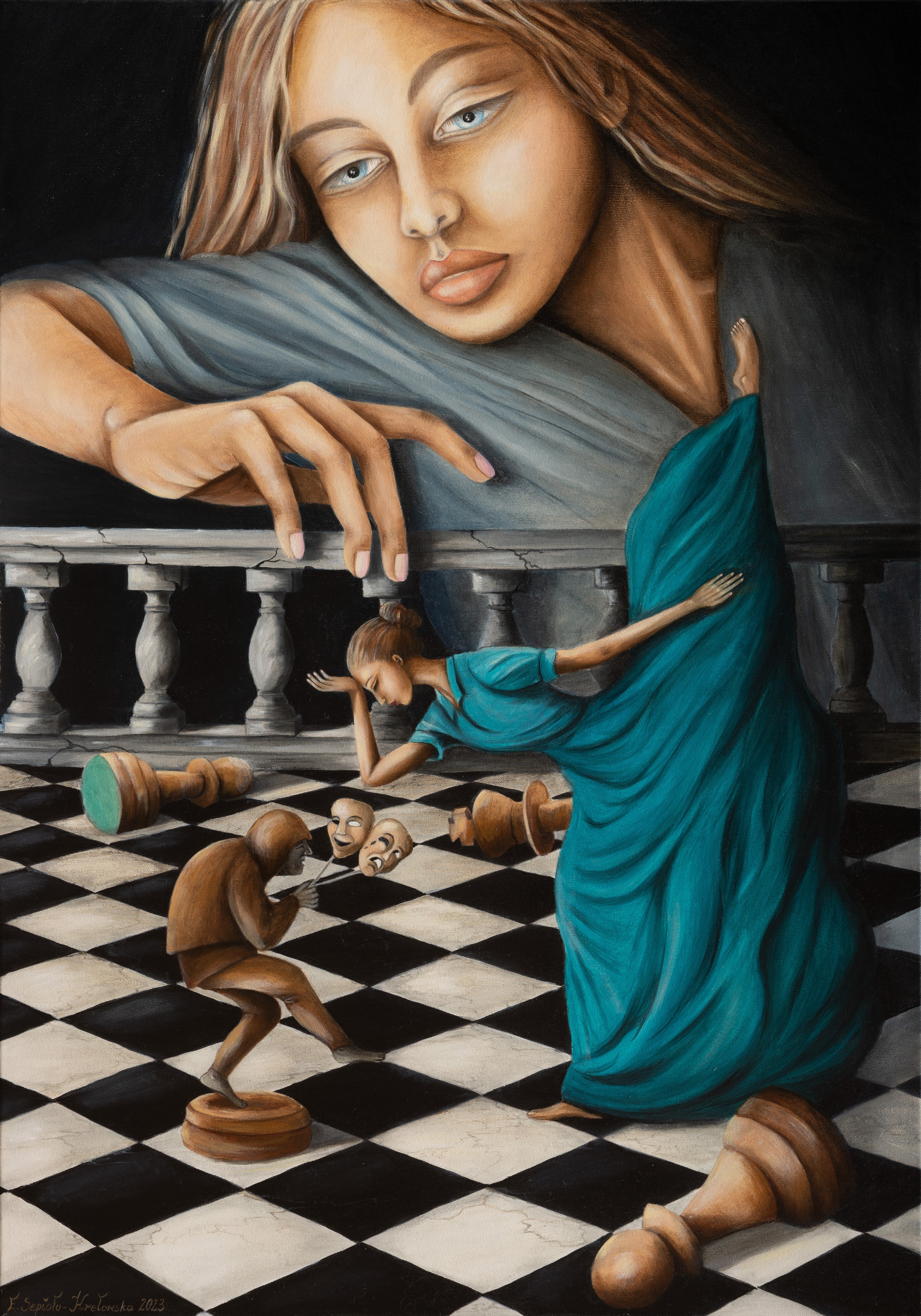 Ewa Sepioło - Krełowska: "...z utęsknieniem czekam na weekendy. Wtedy od rana do wieczora mogę spokojnie robić to, co kocham. Maluję pod wpływem emocji i różnych wydarzeń. Często obrazy są odzwierciedleniem snów. Niektóre powstają na bieżąco, inne znów są głęboko przemyślane, powstają w głowie miesiącami. Często zmieniam też pierwotną koncepcję, co uważam za bardzo intrygujące. Nie mogę być pewna, że to co namaluję jednego dnia zostanie, czy zmieni się w coś zupełnie innego...