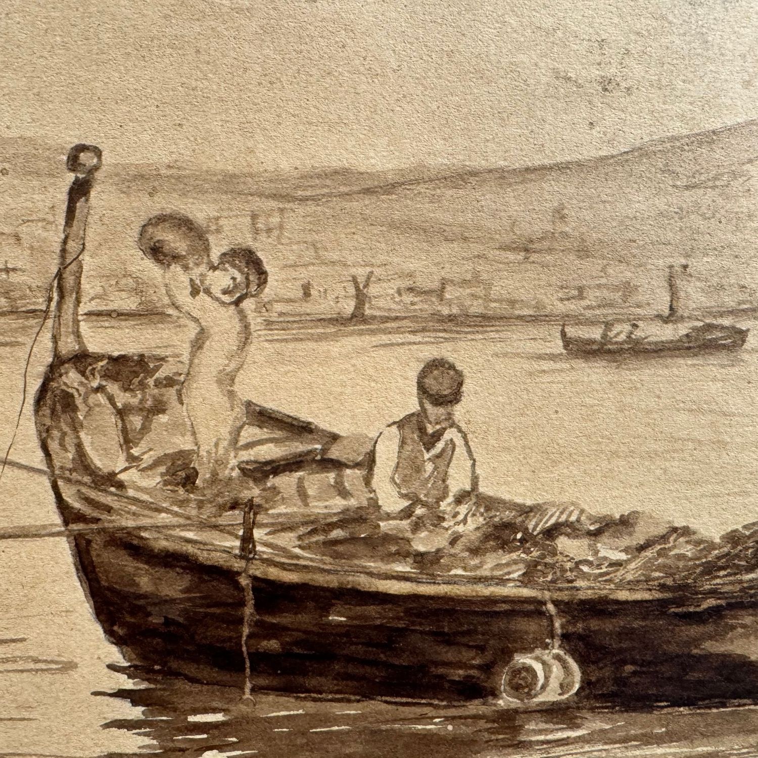 China on cardboard, Italian school period 1932, depicting fishermen in Naples.