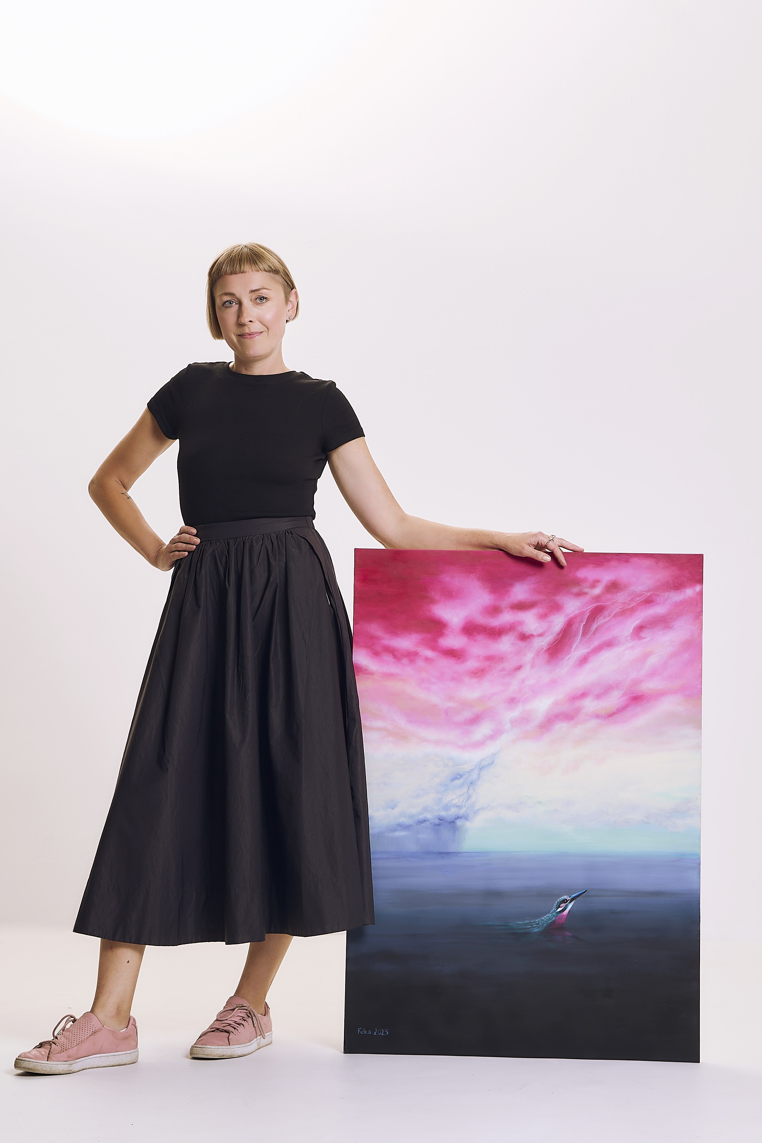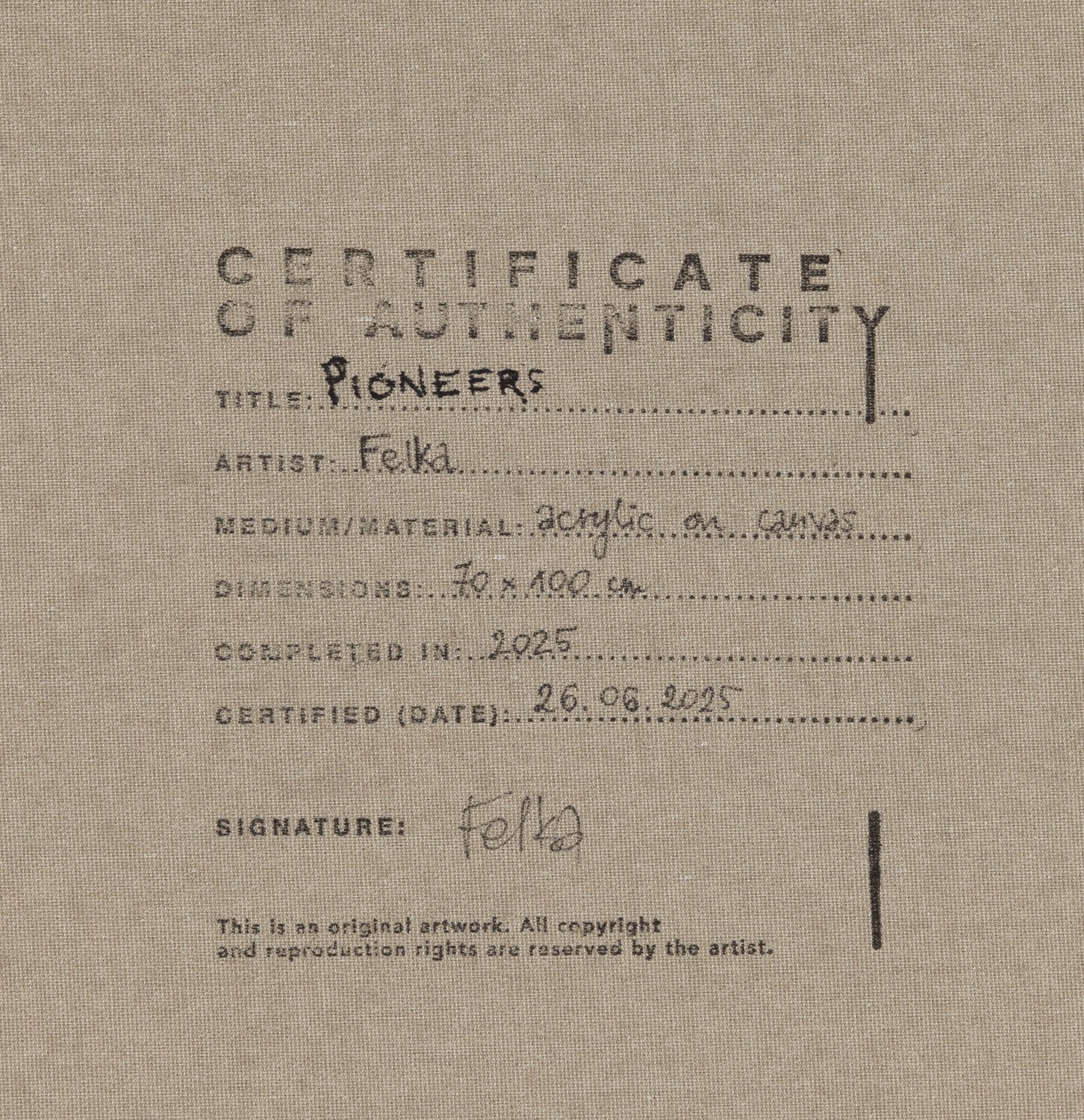„Obraz „Pionierki” inspirowany jest postacią Alicji Dorabialskiej – wybitnej polskiej fizykochemiczki i pierwszej kobiety, która uzyskała tytuł profesorki na Politechnice Lwowskiej. Jej historia stała się punktem wyjścia do rozważań nad losem kobiet, które jako pierwsze przecierały szlaki w różnych dziedzinach – nauce, sztuce, technice, czy życiu społecznym.