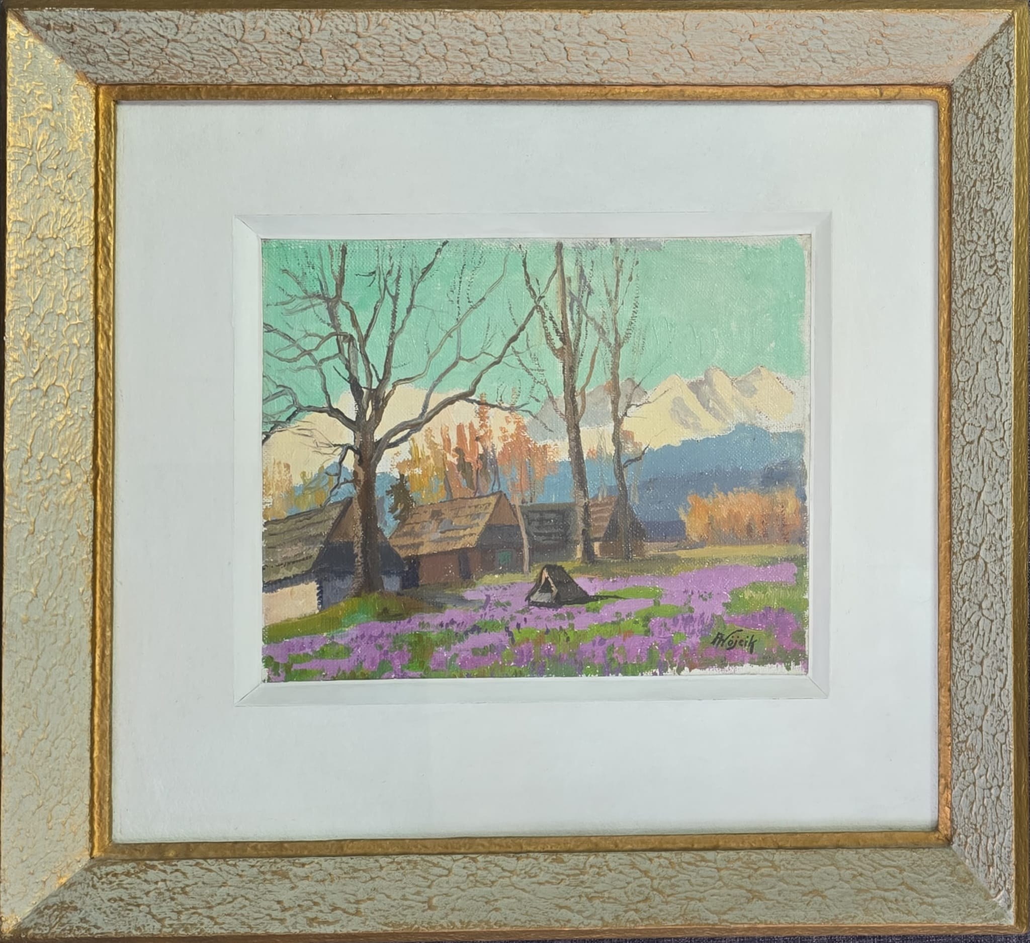 Olej na płótnie, 42 x 46 (rama) / 20 x 24,5 cm