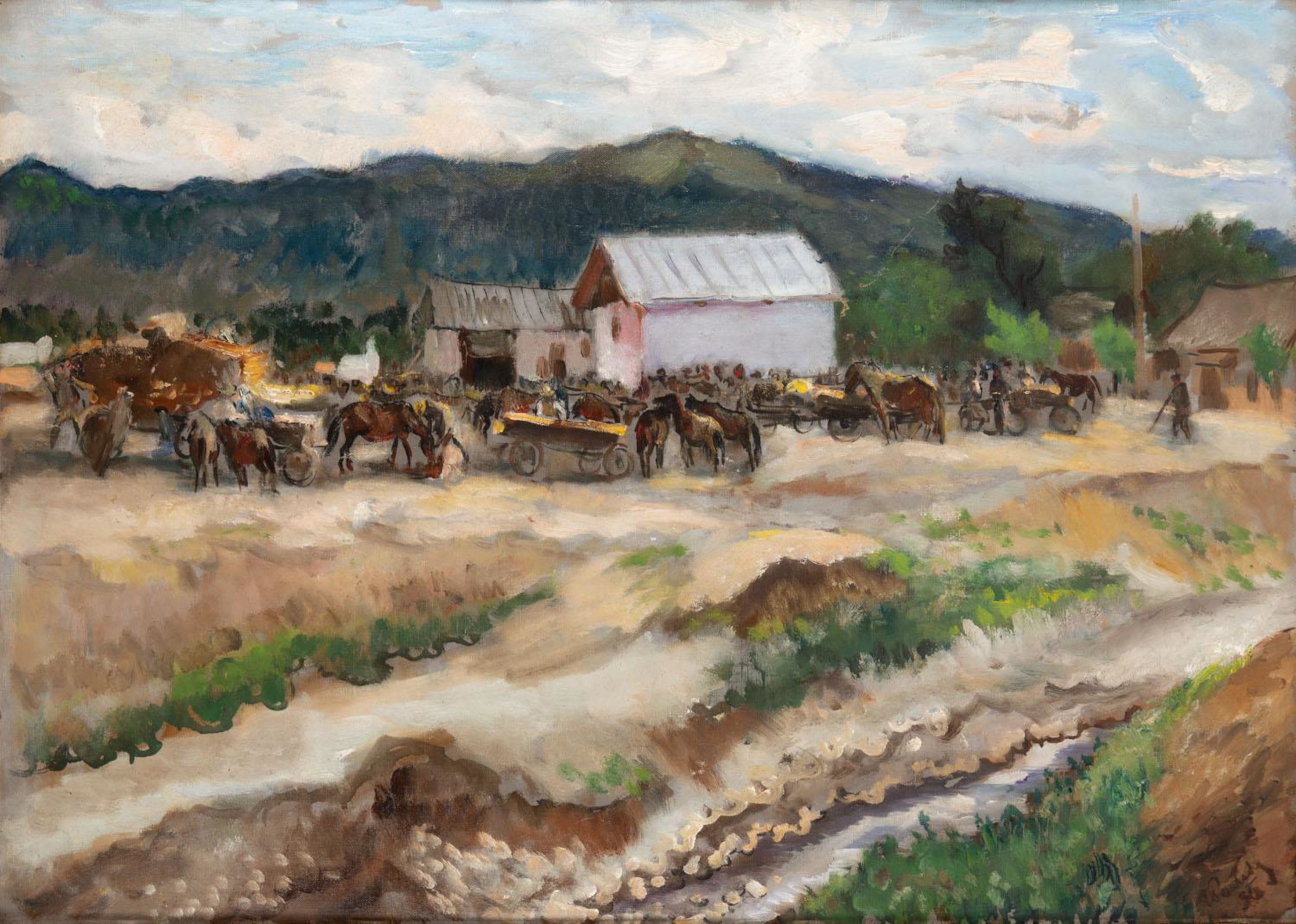 olej, płótno naklejone na tekturę; 64,5 x 90 cm;