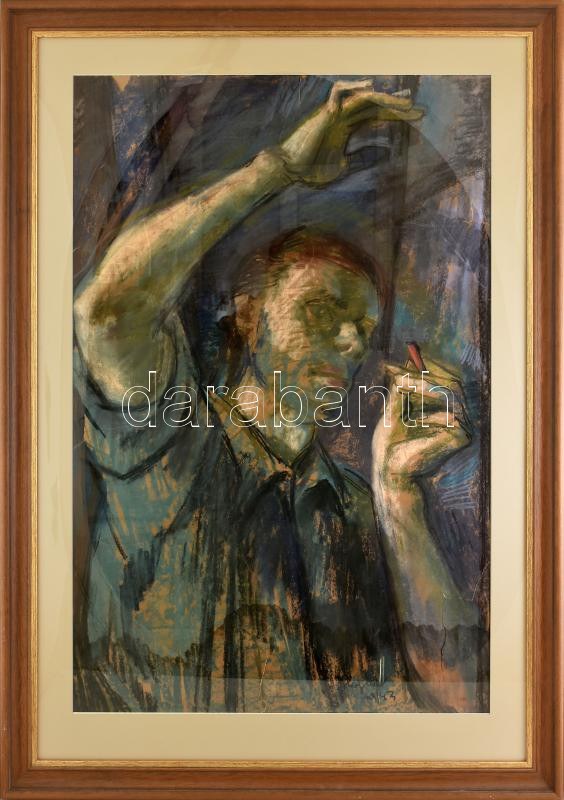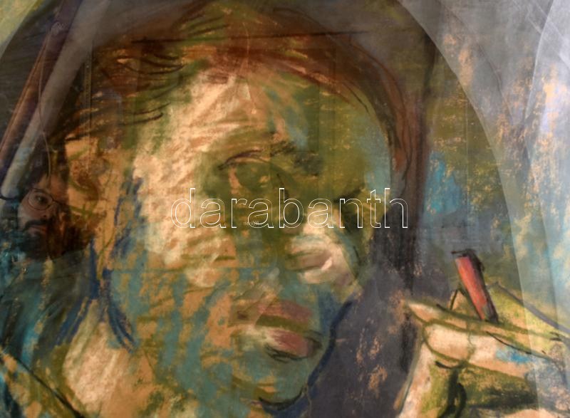 Hajnal János (1913-2010): Önarckép, 1943. Pasztell, papír, jelezve jobbra lent, sérült. Üvegezett fakeretben. 96,5x63 cm. KIZÁRÓLAG SZEMÉLYES ÁTVÉTEL, NEM POSTÁZZUK! / ONLY PERSONAL COLLECTION AT OUR OFFICE!