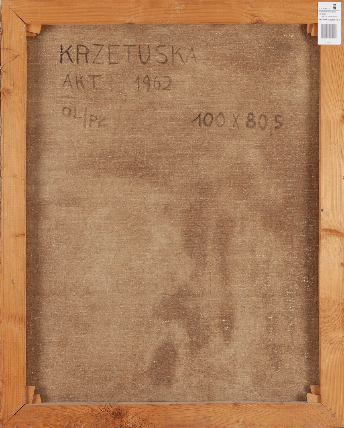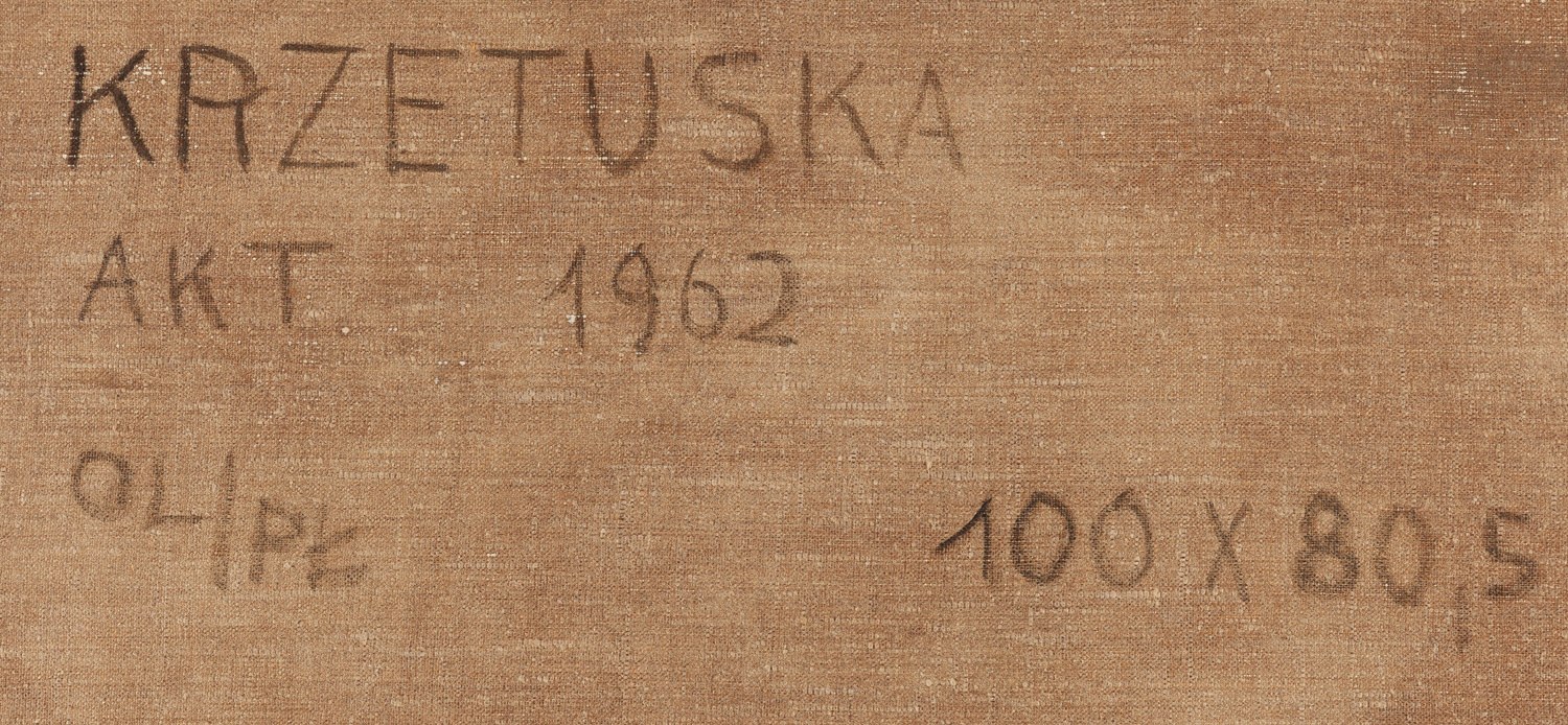 sygnowany, datowany i opisany na odwrociu: 'KRZETUSKA | AKT 1962 | OL/PŁ 100 X 80,5'