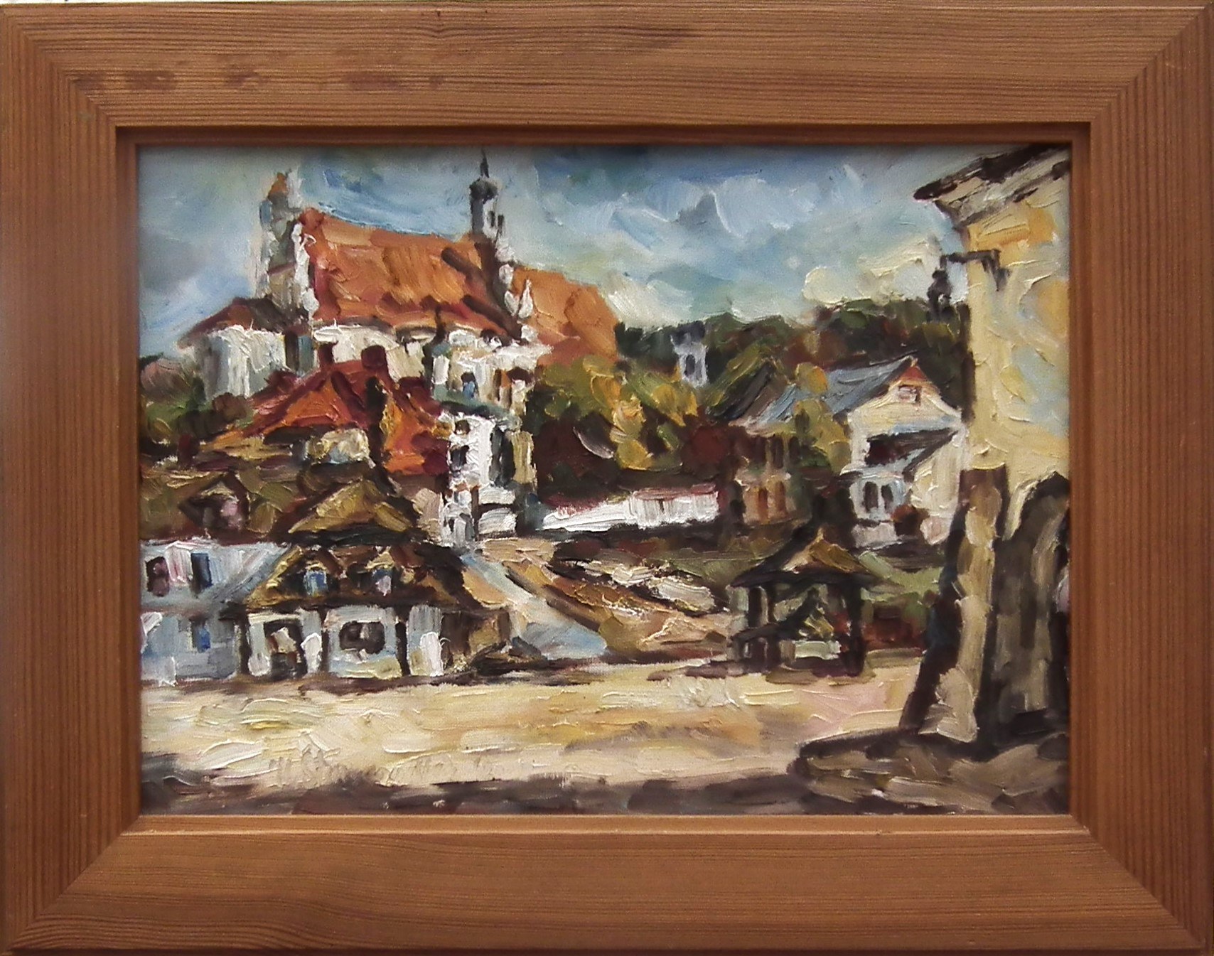 olej na płycie ,24,5x34,5cm,sygn.l.d.i na odwrocie