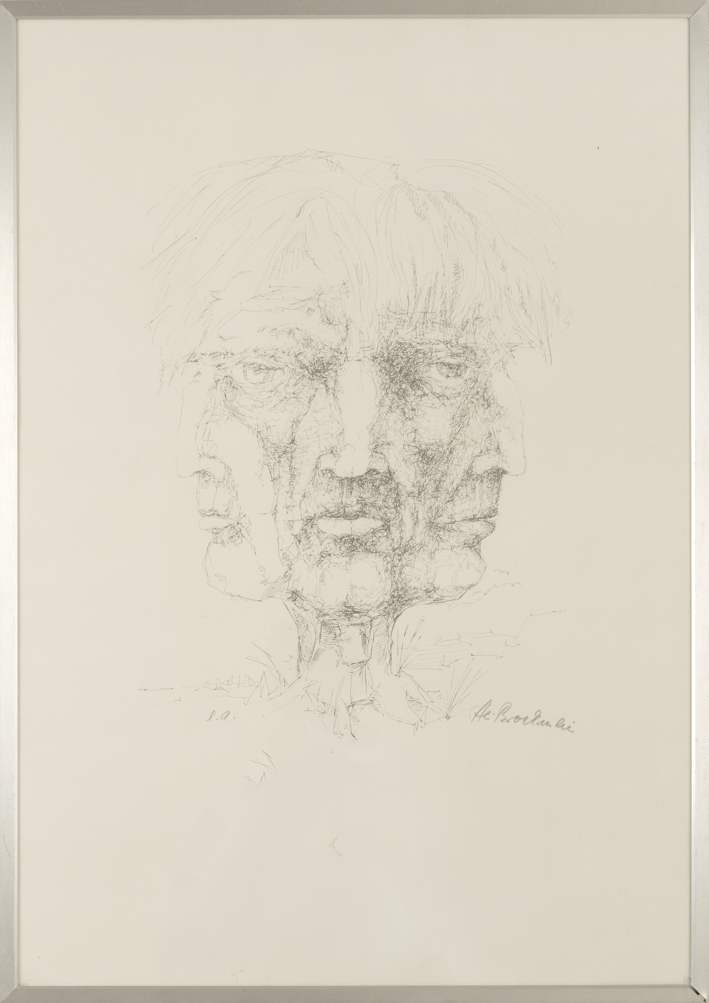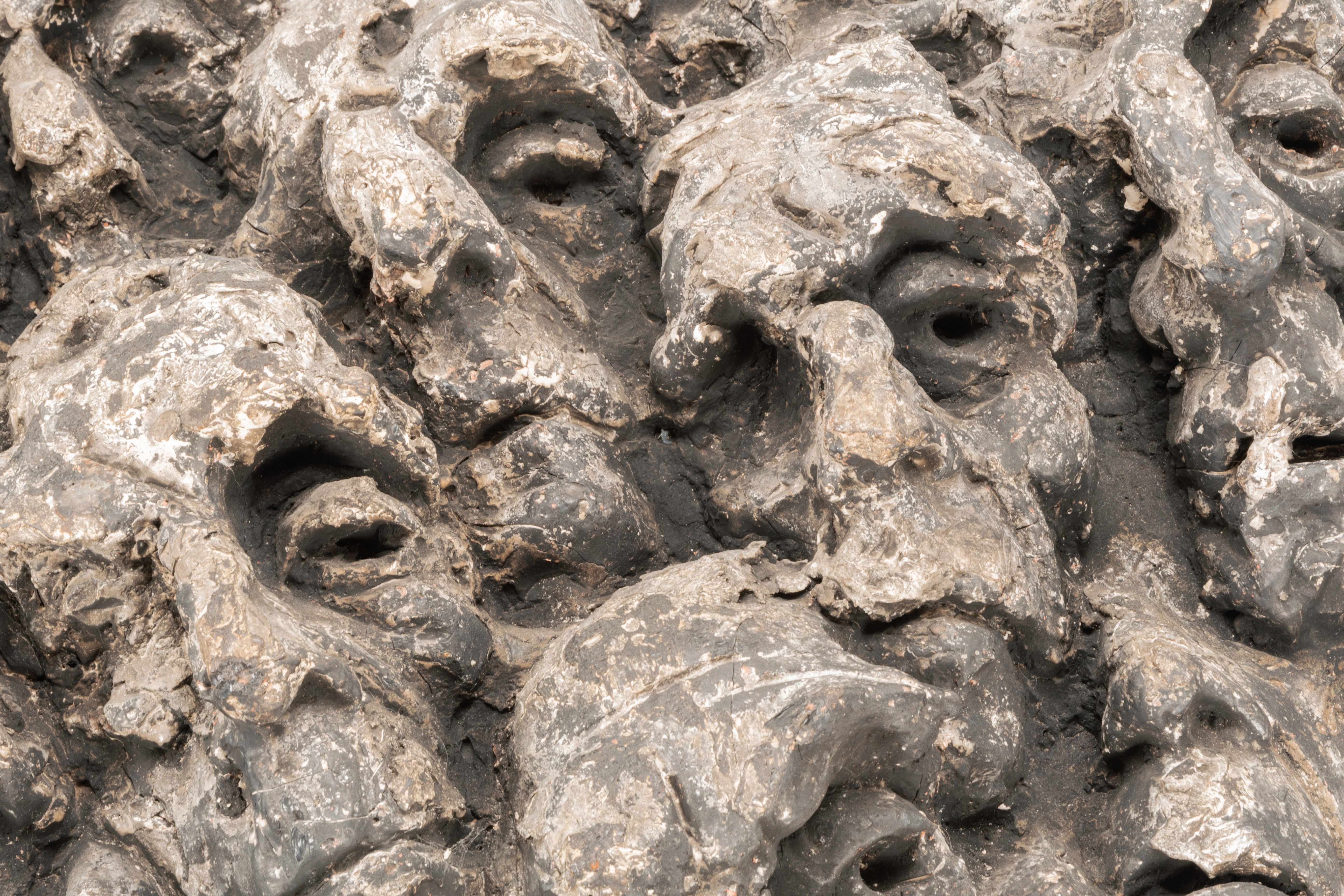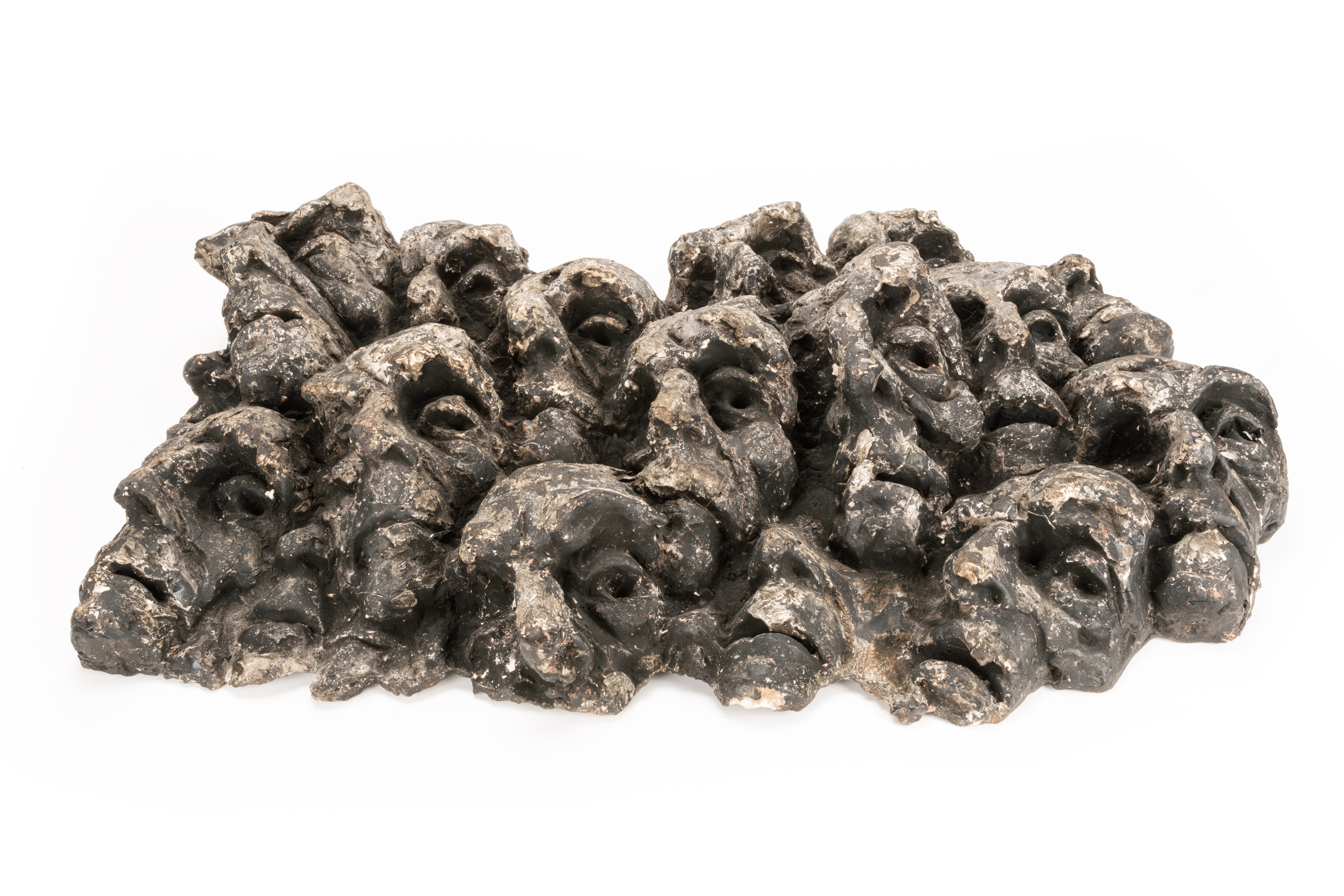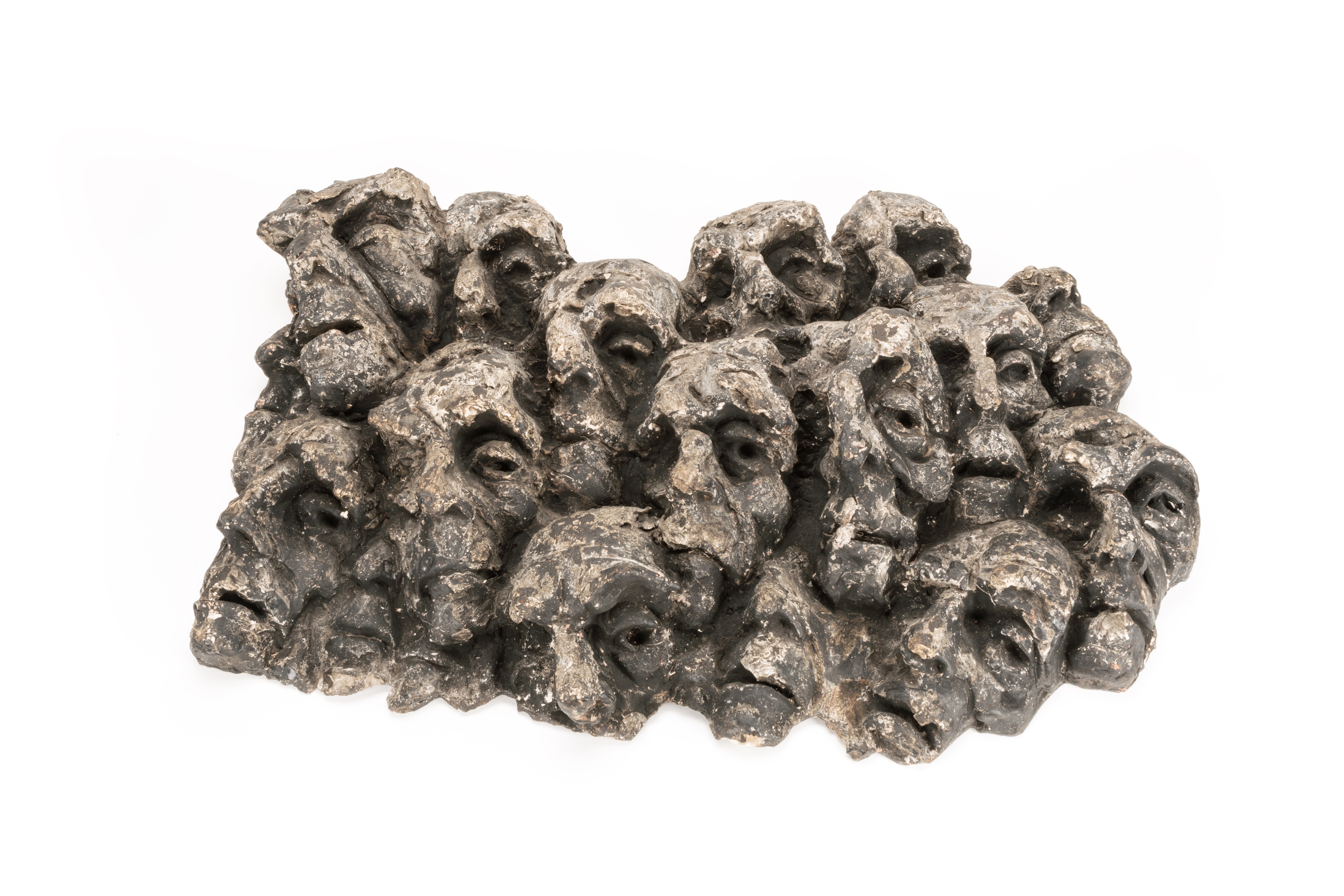 Human heads (probably portraits of concentration camp inmates), relief in plaster and metal, 60 x 81 x 14 cm, fine cracks in the plaster (some due to the creative process) enclosed Heinrich Brockmeier, Mann mit drei Gesichtern, lithograph on paper, 60 cm x 42 cm sheet dimensions, signed, e.a. inscribed, sheet edge creased