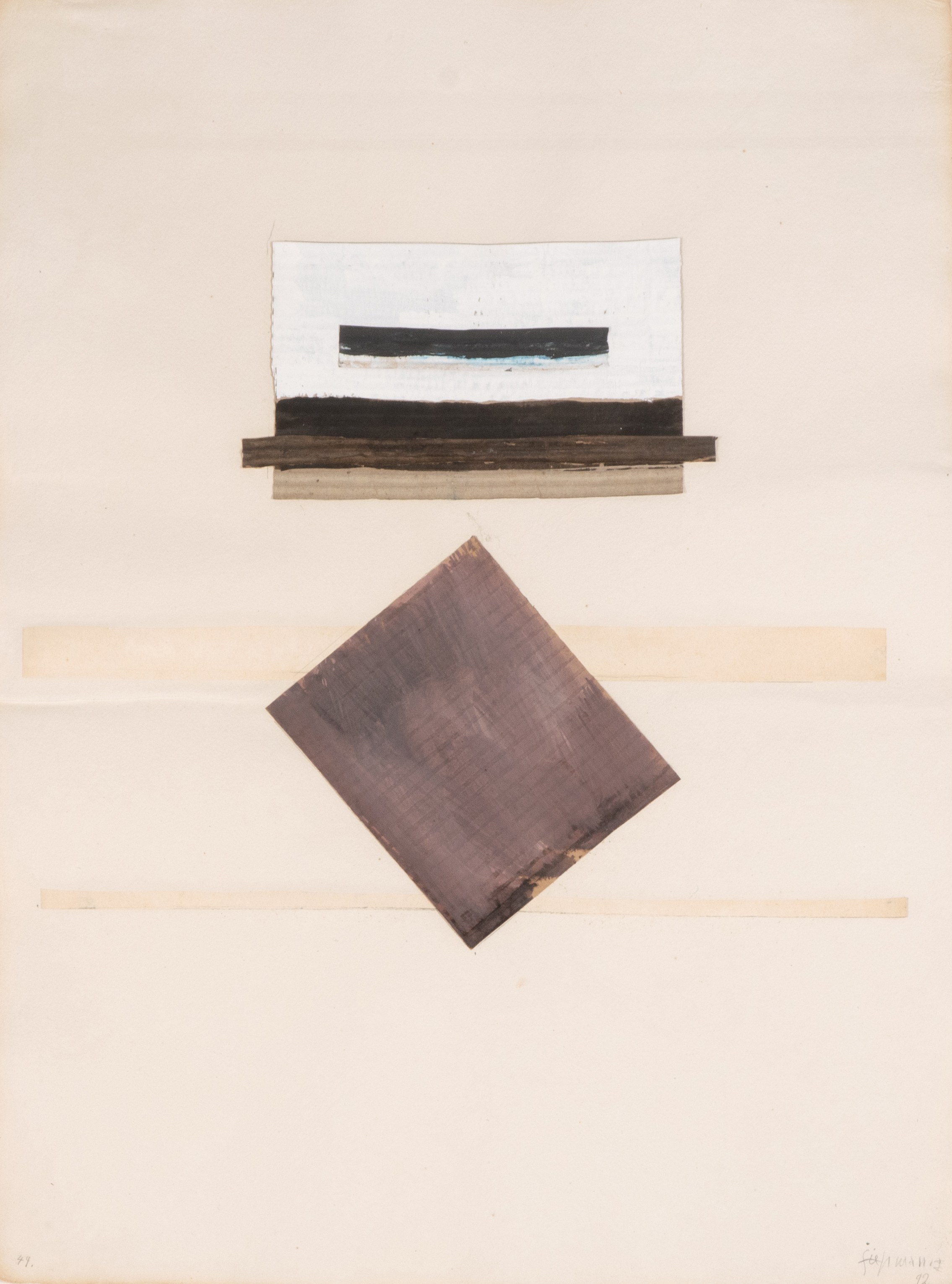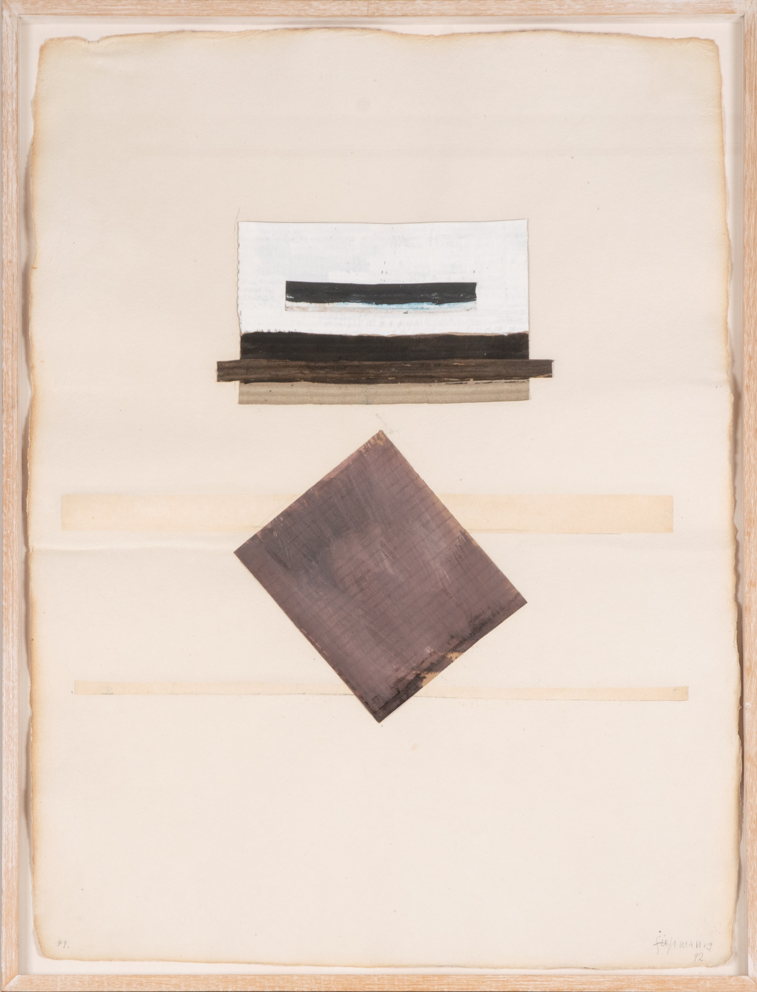 ''C 49'', collage with corrugated cardboard on handmade paper, 77 cm x 57.5 cm sheet dimensions, signed, dated 92, exhibited at the Kunstverein Lippstadt, mounted, sheet browned and wavy