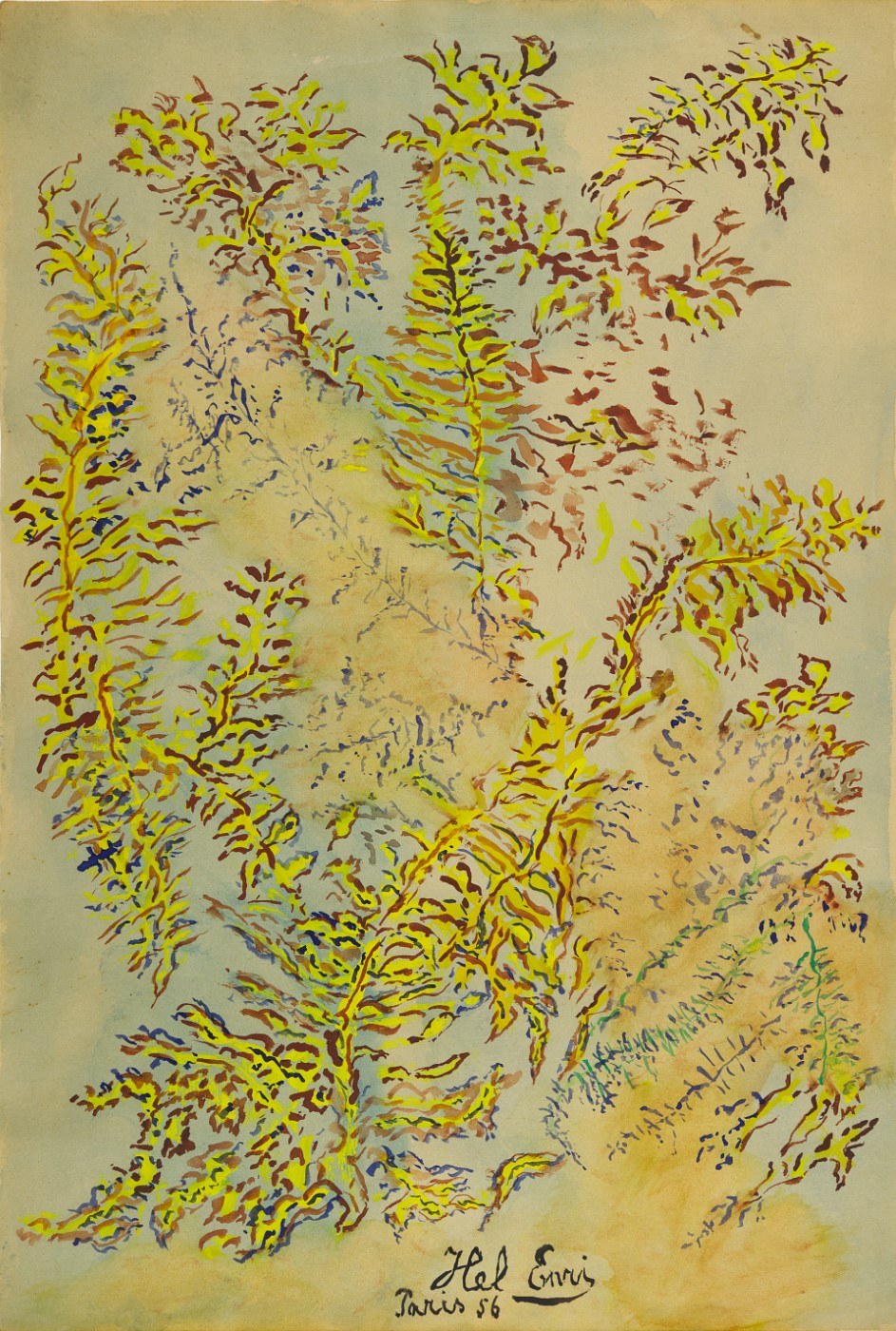 W Muzeum POLIN w 2024 roku miała miejsce „Bio-faktura”. Wystawa malarstwa Hel Enri, na której zaprezentowano twórczość tej niezwykłej artystki z kolekcji Fundacji Art & Modern. Praca „Jesienna abstrakcja roślinna” była prezentowana na wystawie. Praca jest typową dla artystki kompozycja inspirowaną światem roślin i zwierząt. Jest jej wspomnieniem, imaginacja, a nie przedstawieniem konkretnego zdarzenia, czy oglądanego obiektu. Jest esencją emocji, światła, wrażeń wizualnych i chwili, które zostały przedstawione za pomocą miękkich, delikatnych linii i pojedynczych punktów przywołujących swym charakterem zwojowe malarstwo chińskie.