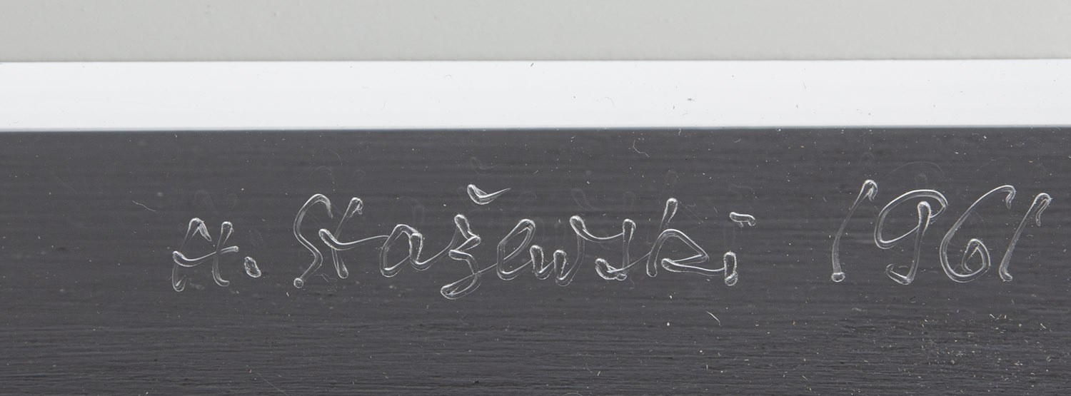 sygnowany i datowany p.d: 'H. Stażewski 1961' oraz opisany l.d.: '72/100'