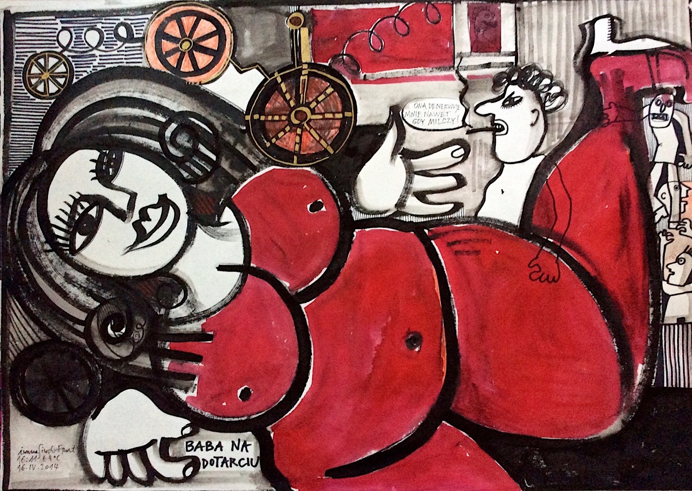 tusz, kredka, papier, 50 x 70 cm, sygn. l.d. Iwona Siwek-Front