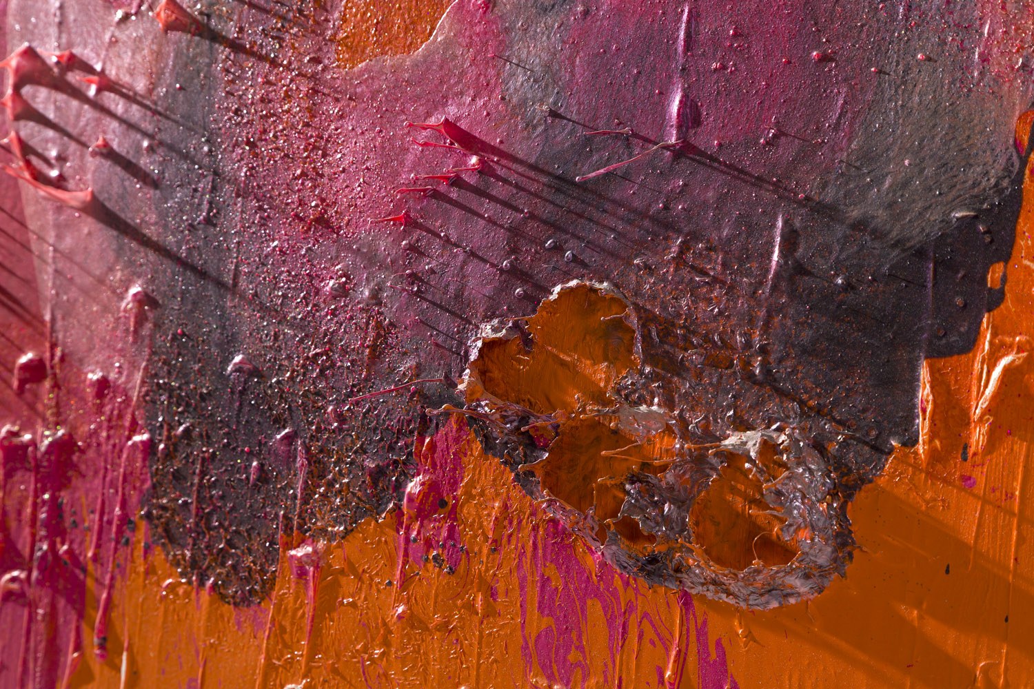 „SPIERDALAĆ” – tak nazwałam mój obraz, który wystawiłam na aukcji Herstory ku pamięci Izabeli Elżbiety i innych kobiet wymazanych z historii. Ten obraz też nie daje się ujarzmić – jest krzywy, zdeformowany, odmienny. Sam się „zepsuł”, udowadniając, że „spierdolenie” może być siłą, że może tworzyć coś nowego.