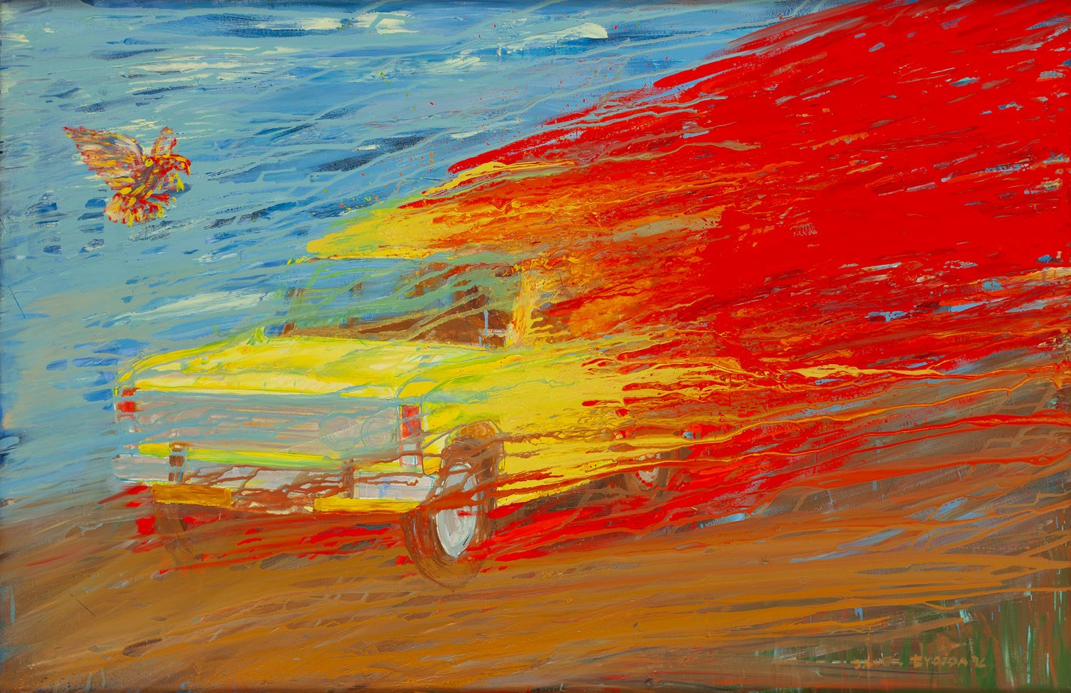 sygnowany, datowany i opisany na odwrociu: 'JACEK ŁYDŻBA POLSKI FIAT 125P 1996'