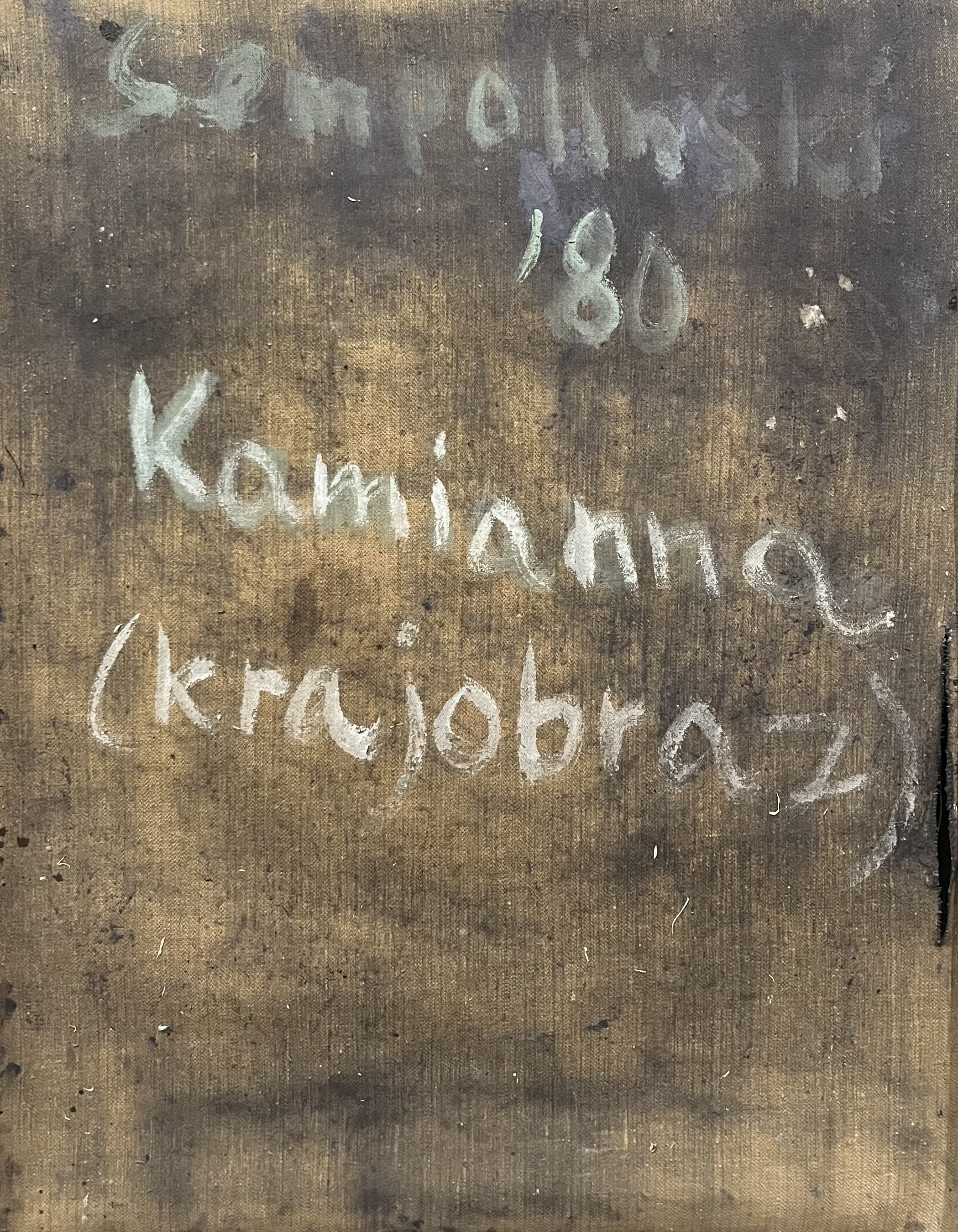 olej, płótno, 81 x 65 cm sygnowany, datowany i opisany na odwrociu: Sempoliński/'80/Kamianna/(krajobraz)