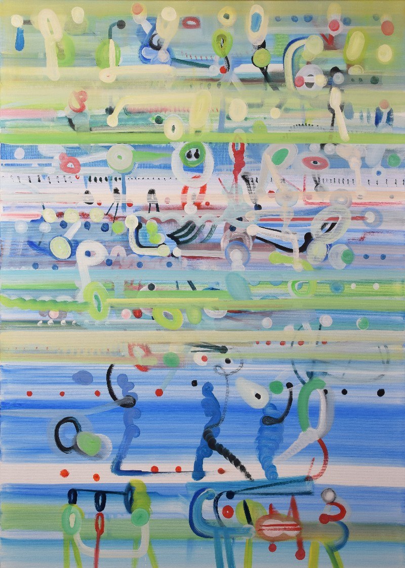sygn., dat. i opisany na odwrocie: JANUSZ ANTOSZCZYK / TYTUŁ DOWOLNY 2022 / OLEJ/PŁÓTNO / 140/100 CM.
