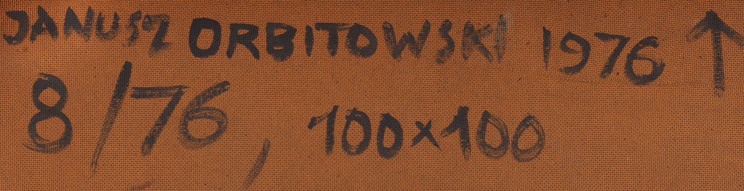 sygnowany, datowany i opisany na odwrociu: 'JANUSZ ORBITOWSKI 1976 [wskazówka montażowa] | 8/76, 100 x 100'
