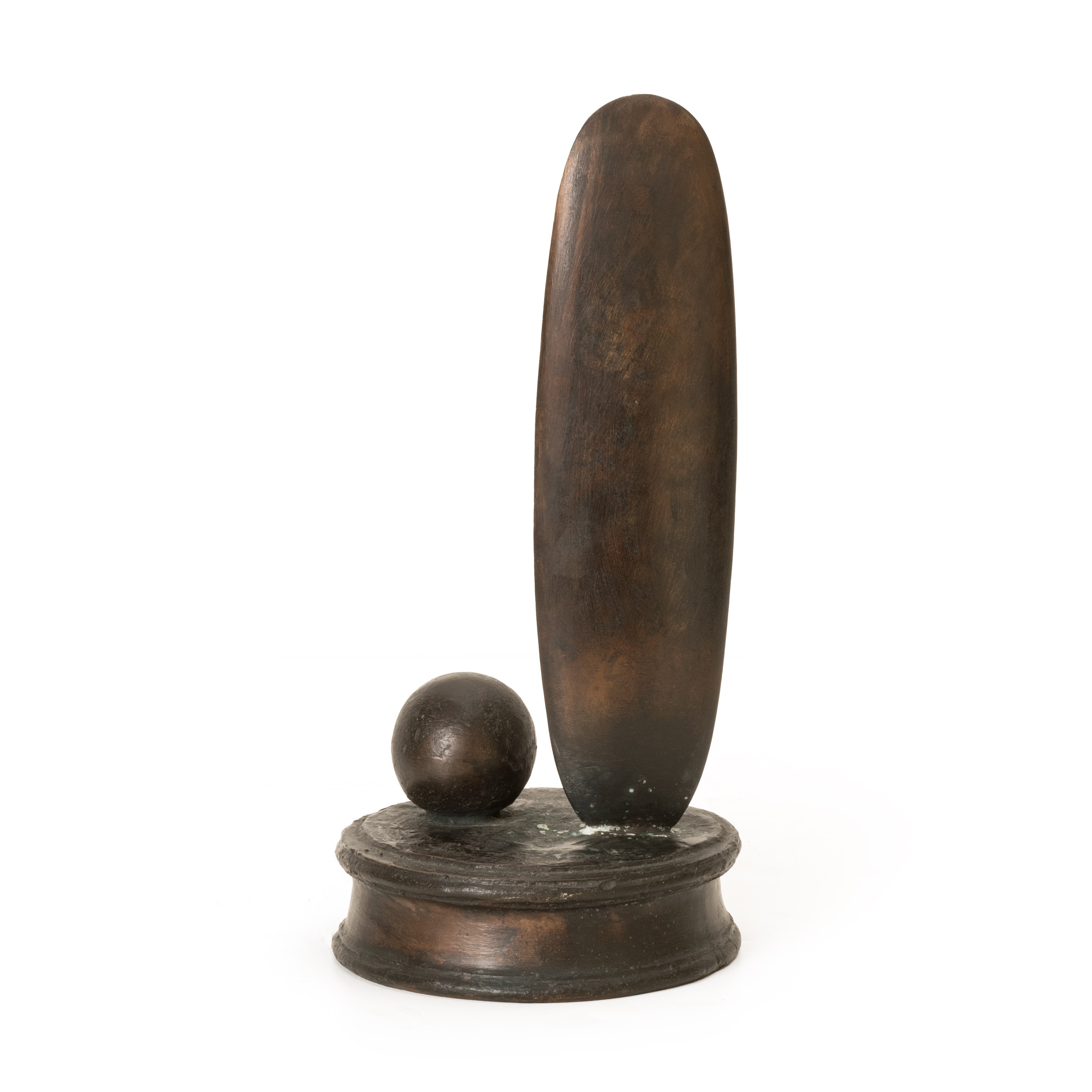 Ellipse and sphere, bronze, dark patinated, height 28 cm, monogrammed, dated 88, numbered I-XX, traces of corrosion, slight verdigris in places