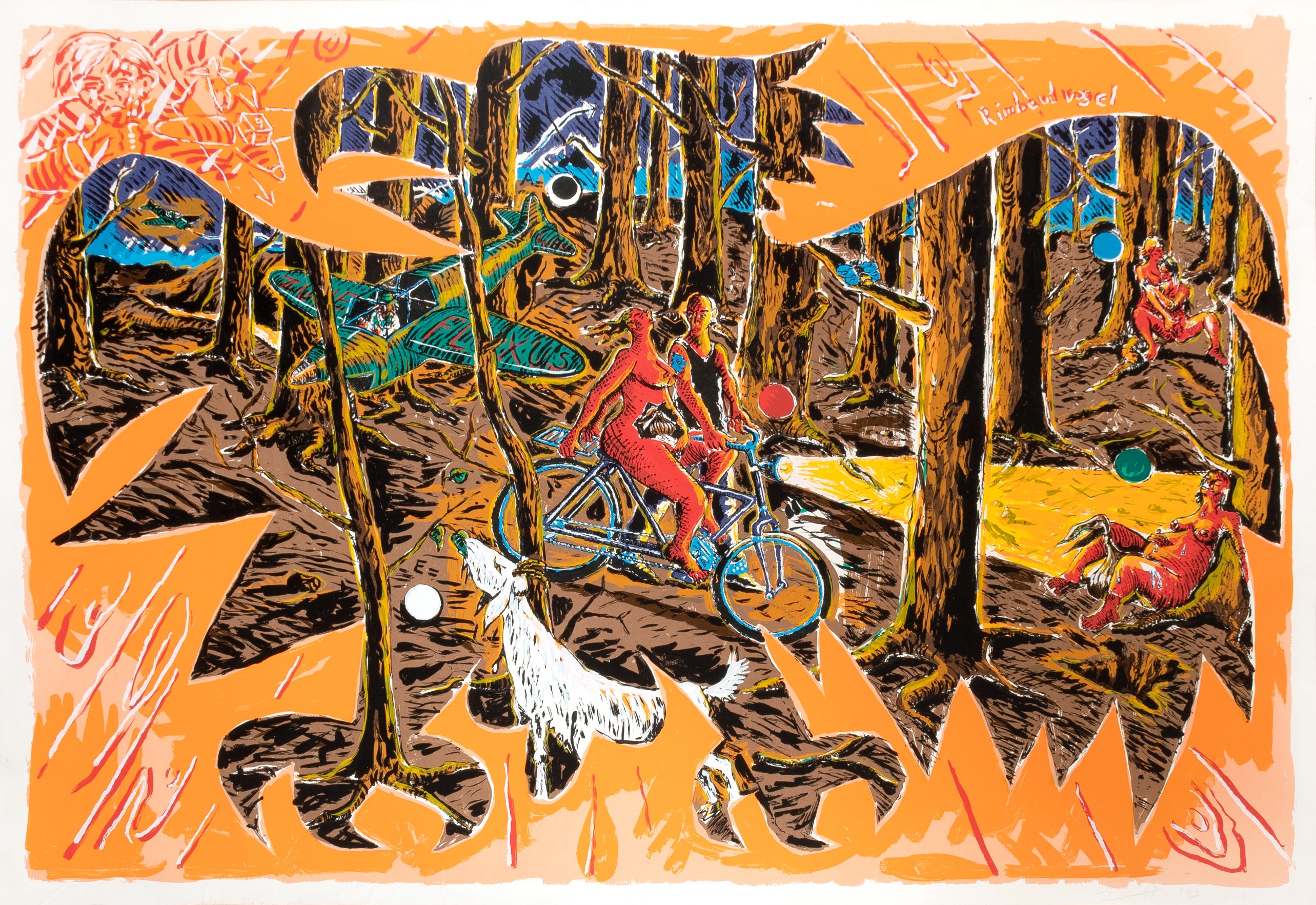 Rimbaudvogel, screenprint on paper, 134 × 94 cm sheet size, signed, provenance: inscribed e.a. (épreuve d'artiste), dated 1993, partially creased, mounting traces on verso, paper rubbed in one spot, partially with minor foxing, partially with fingerprints