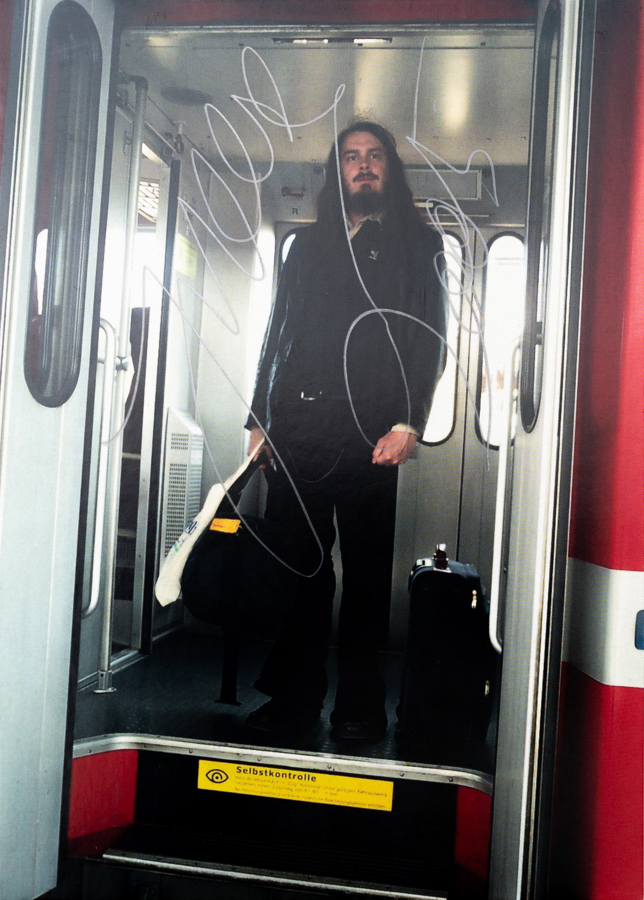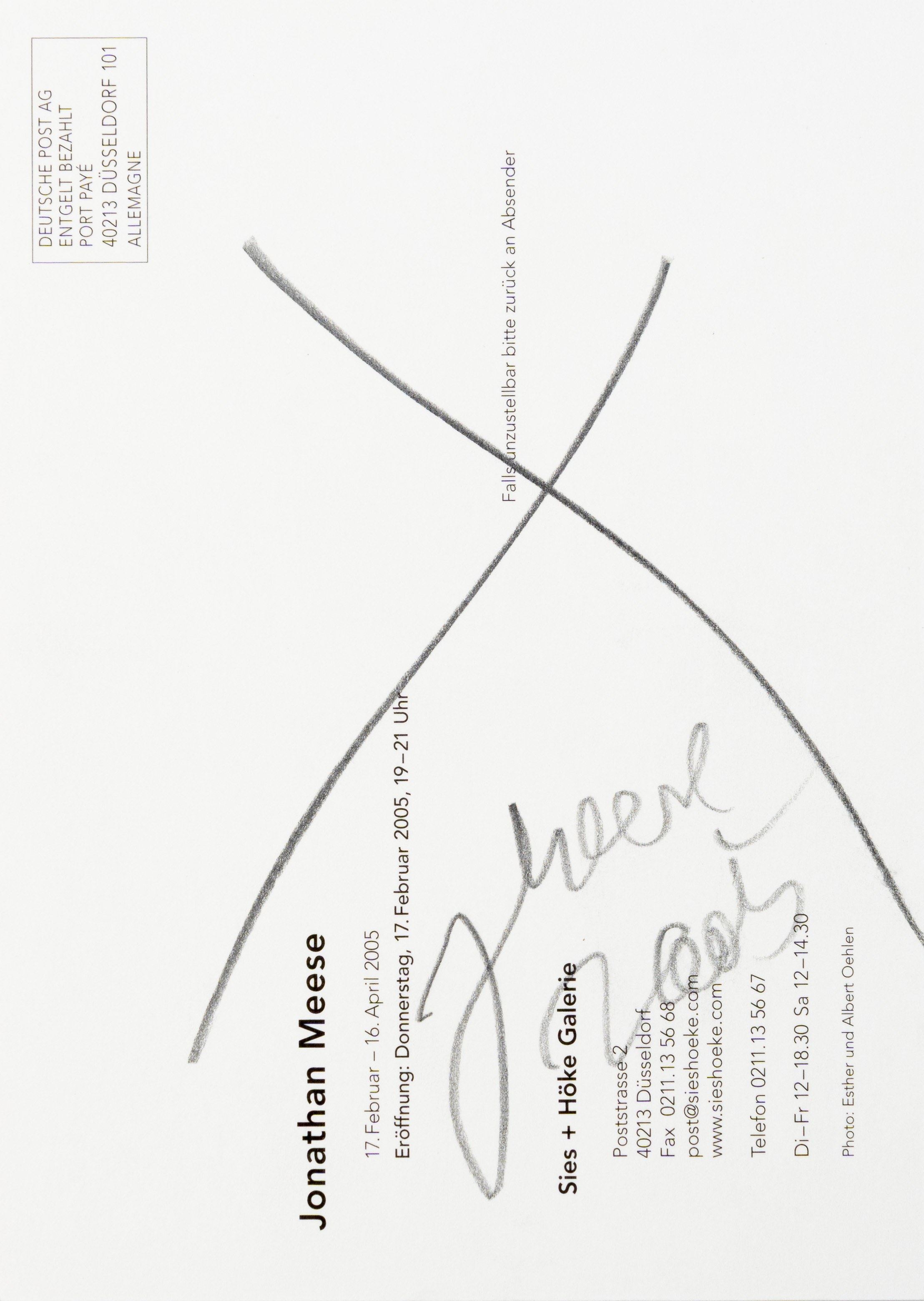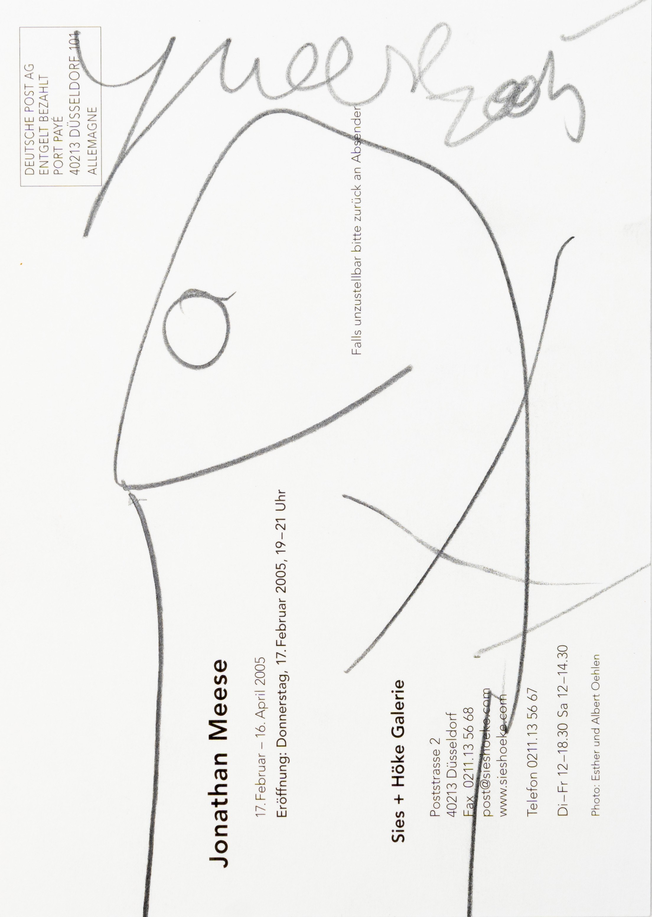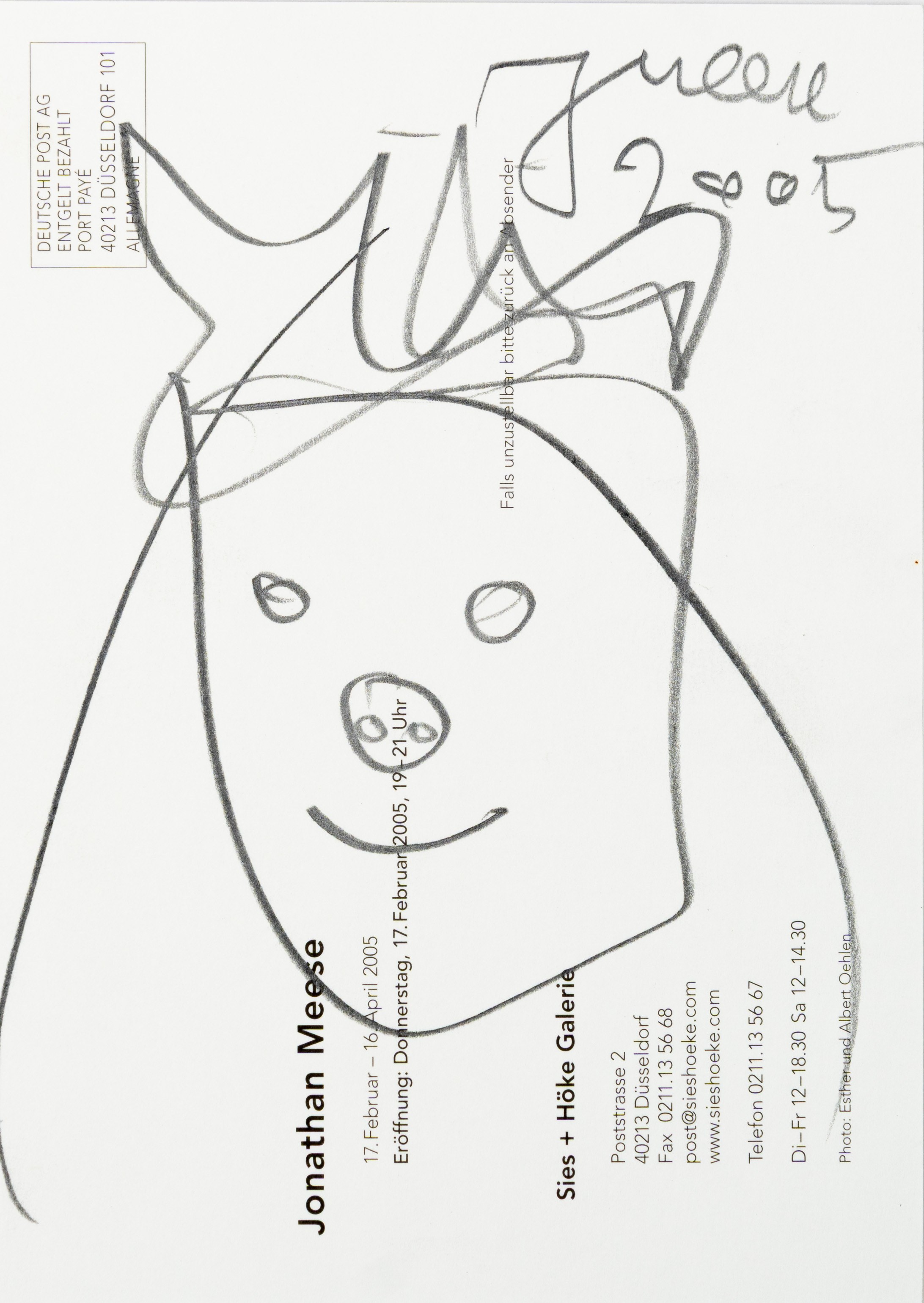 15-pcs, bundle of exhibition invitations and flyers with sketches and artist's signature, 10 times pencil on firm paper, 5 times Edding on firm and light paper, 7 times 10.5 cm x 30 cm sheet dimensions, 7 times 17.5 cm x 12.7 cm sheet dimensions and 1 time 10.5 cm x 15 cm sheet dimensions, each signed, signed once by Peter Doig, signed twice by Daniel Richter, partially minimally rubbed