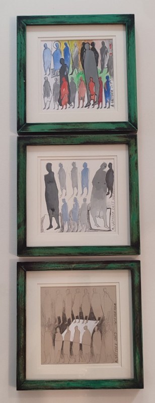 Tempera, ołówek na tekturze 3 x 18,5 x 18,5 cm tryptyk