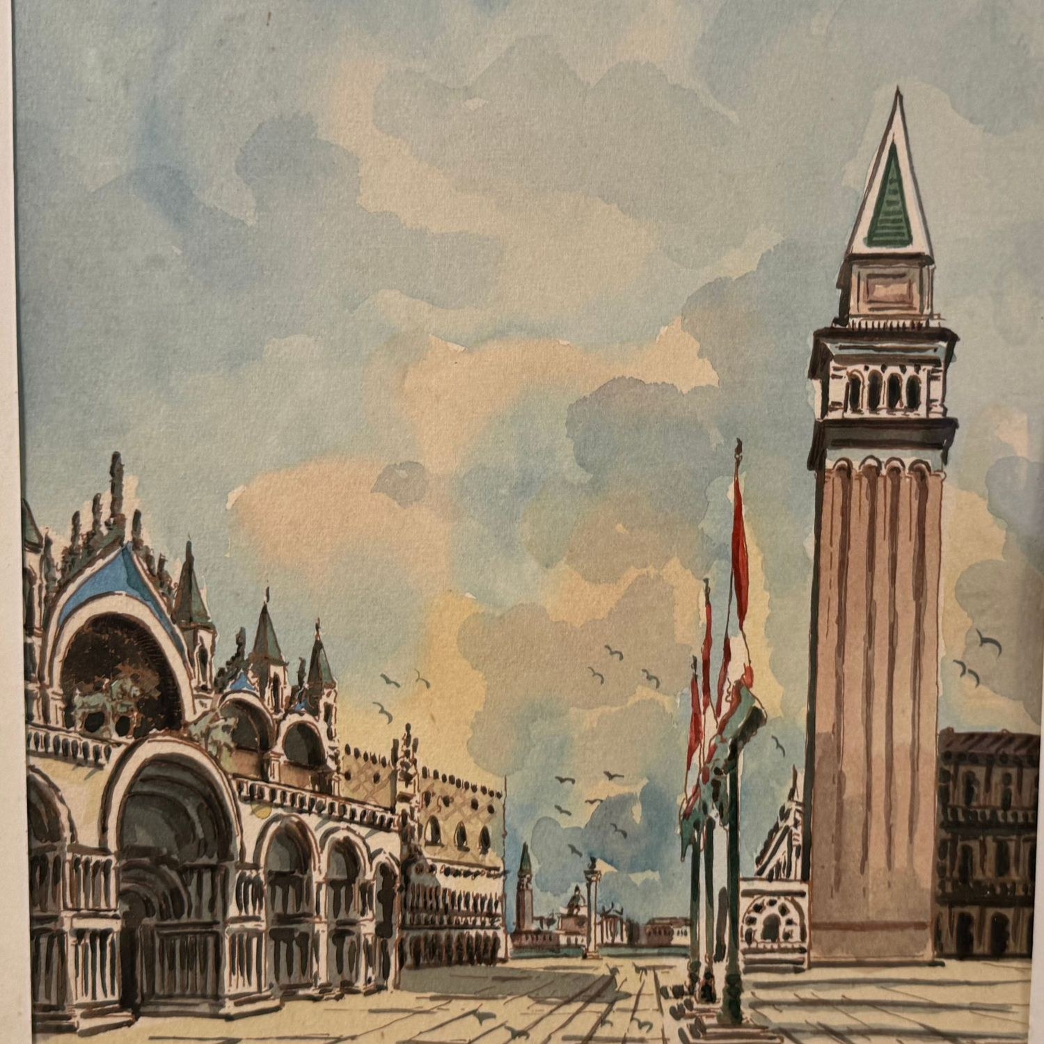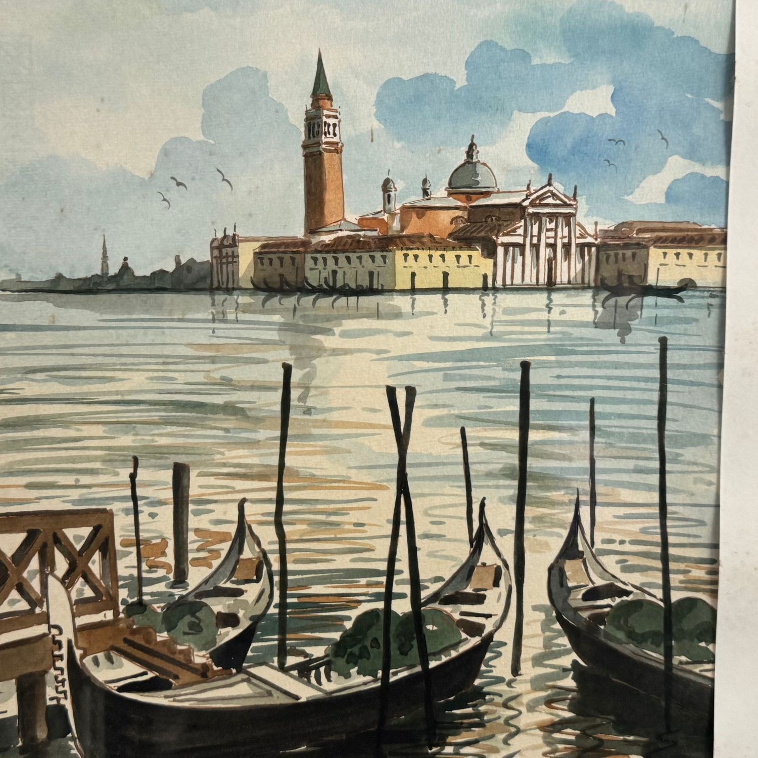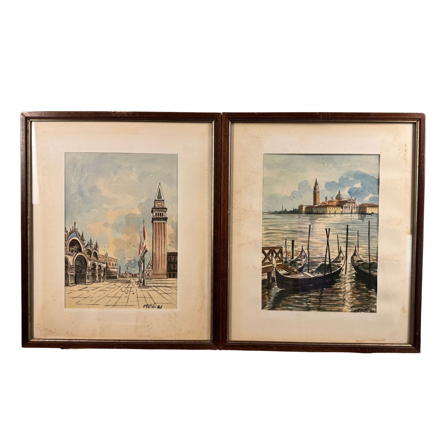 Pair of mixed media works on paper, 20th century, Italian school, depicting Venice.