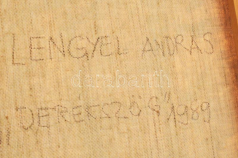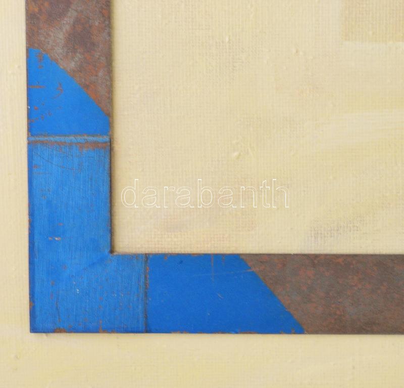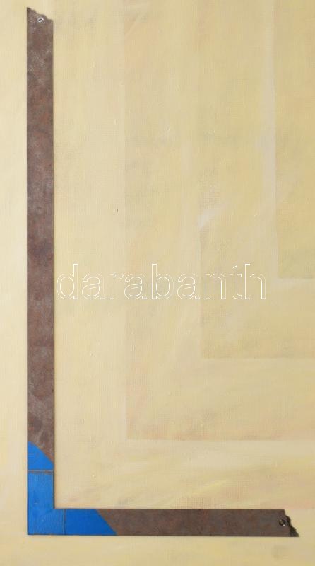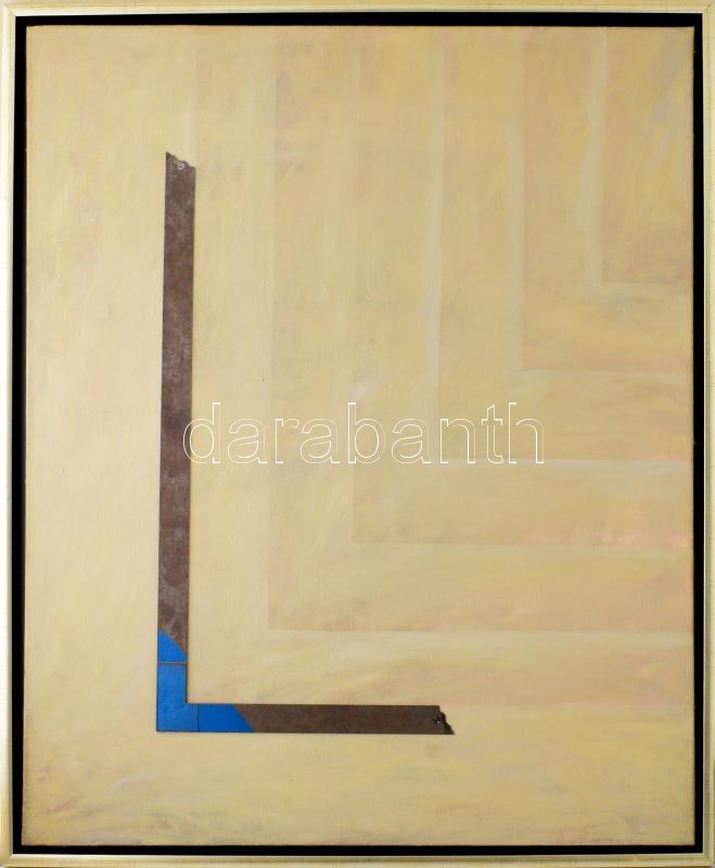 Lengyel András (1952-): Derékszög, 1989. Vegyes technika, applikáció, vászon. Jelzett a hátoldalán. Fakeretben. 100x80 cm. KIZÁRÓLAG SZEMÉLYES ÁTVÉTEL, NEM POSTÁZZUK / ONLY PERSONAL COLLECTION IN OUR OFFICE!