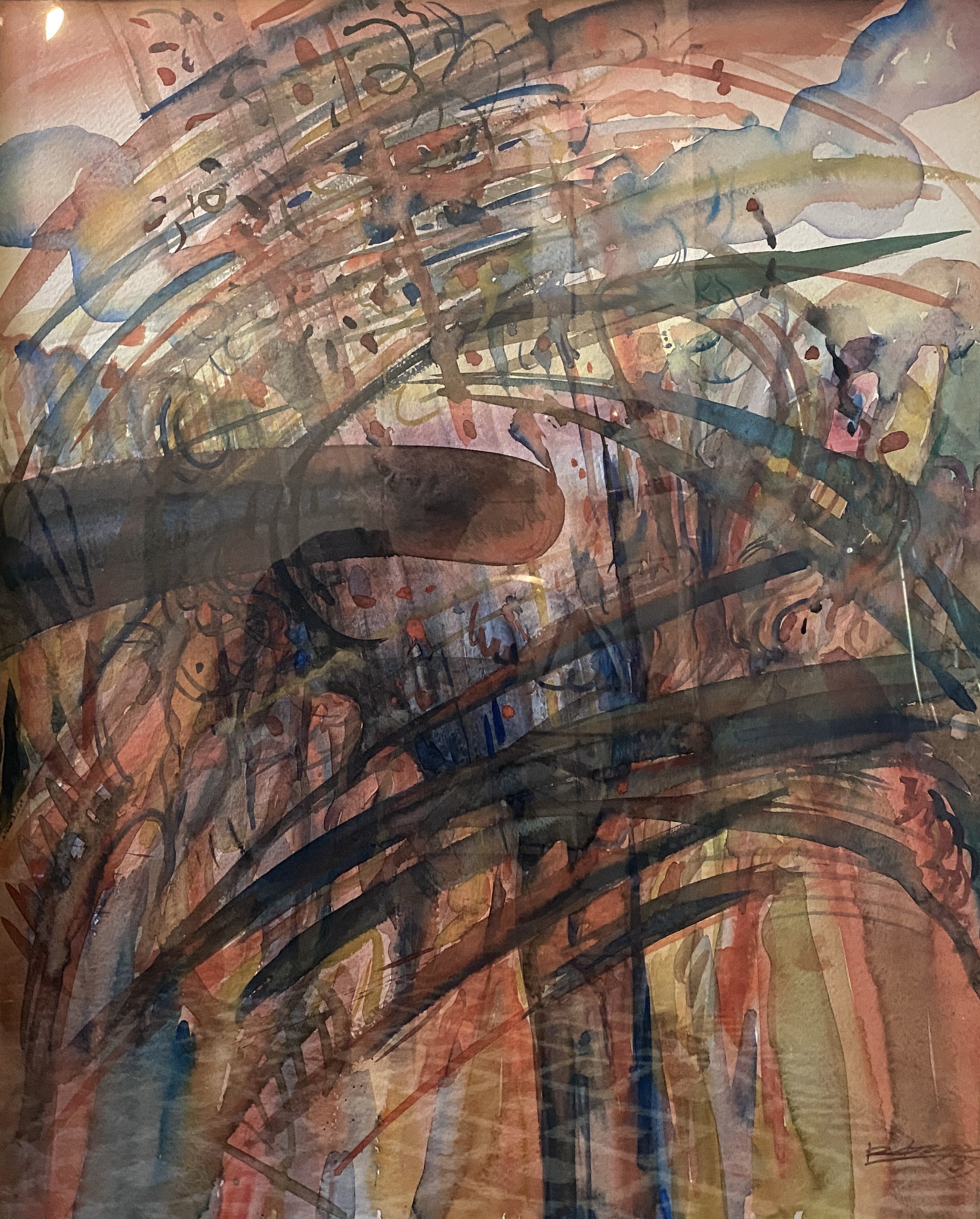gwasz,tusz(?)/papier, 98 x 63 cm , sygnowana p.d., praca oprawiona