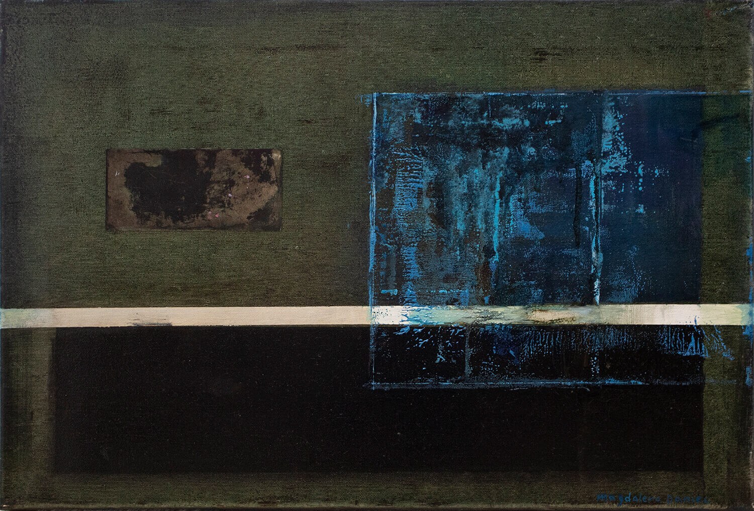 olej, techniki mieszane, kolaż, płótno, 40 x 59 cm, sygn. p.d.: Magdalena Daniec, oraz na odwrocie