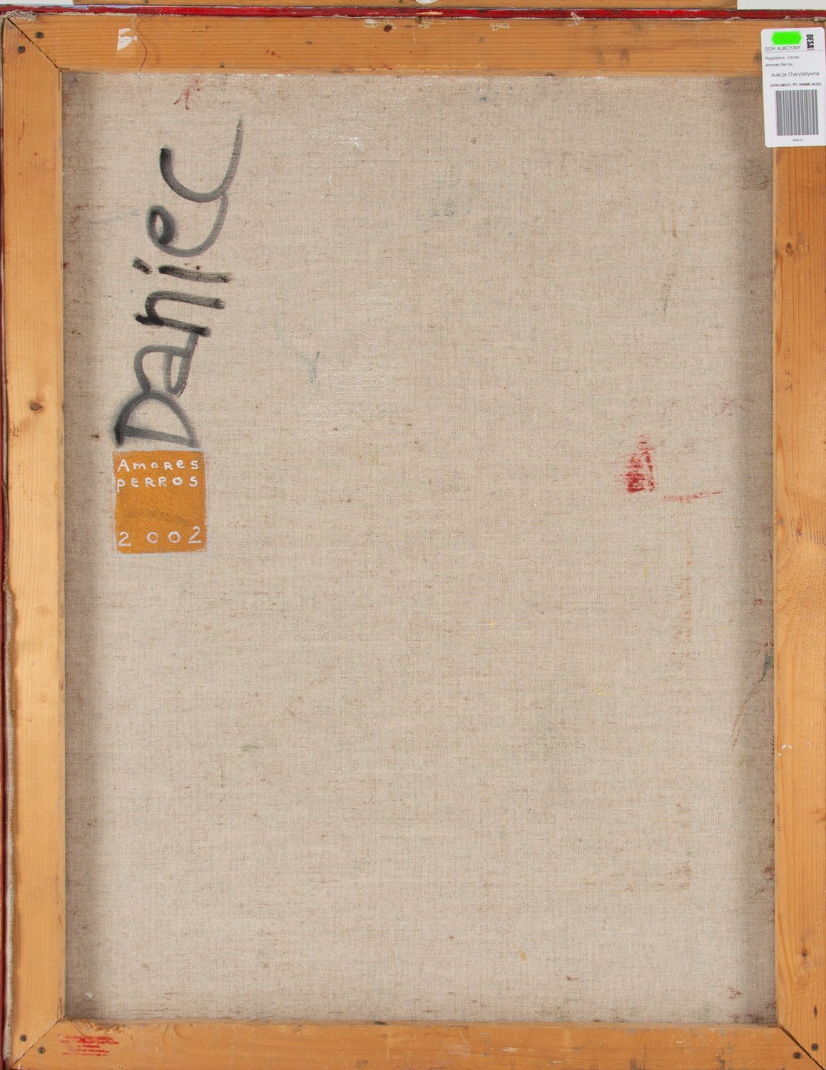 sygnowany, opisany i datowany na odwrociu: 'Daniec | Amores Perros | 2002'