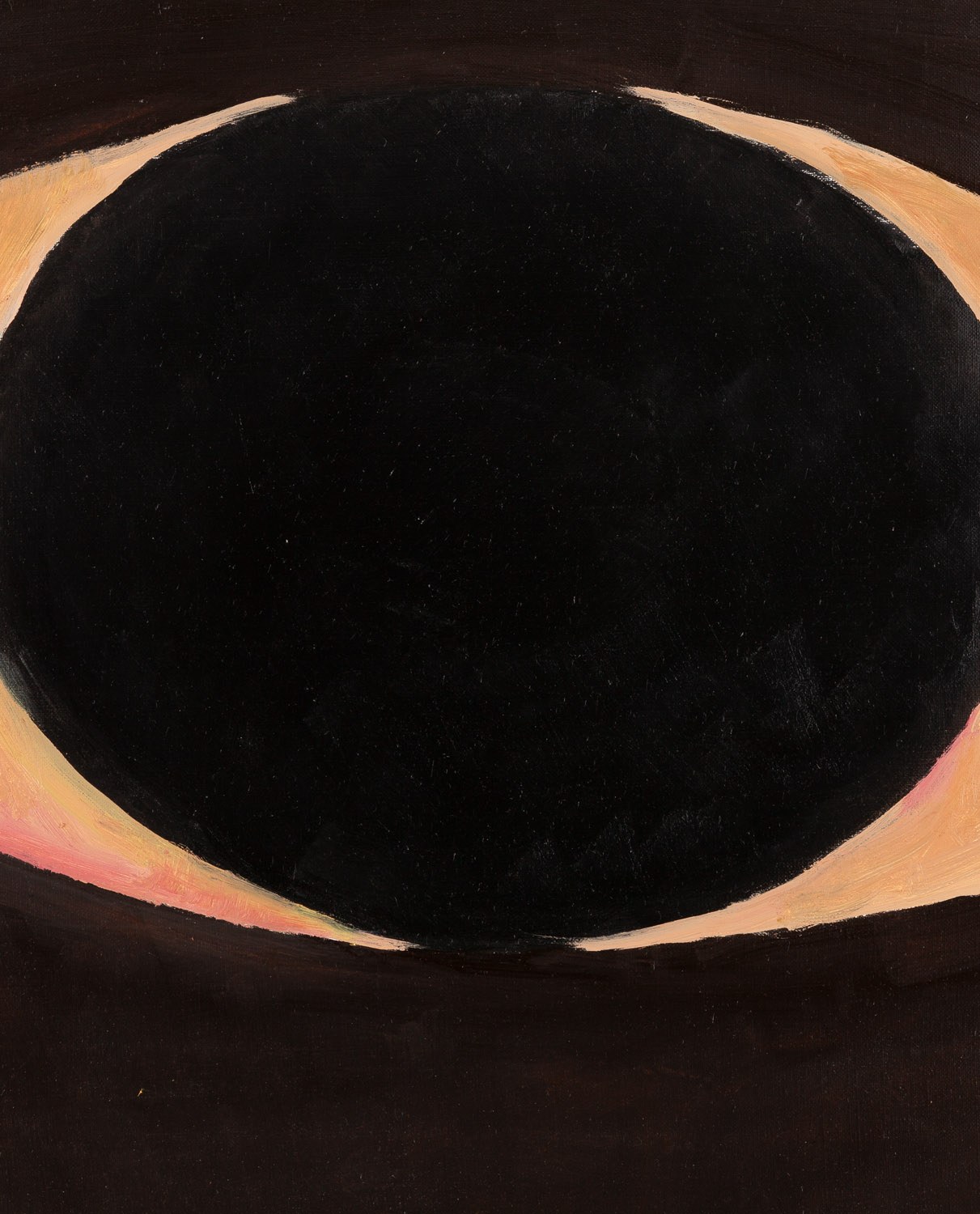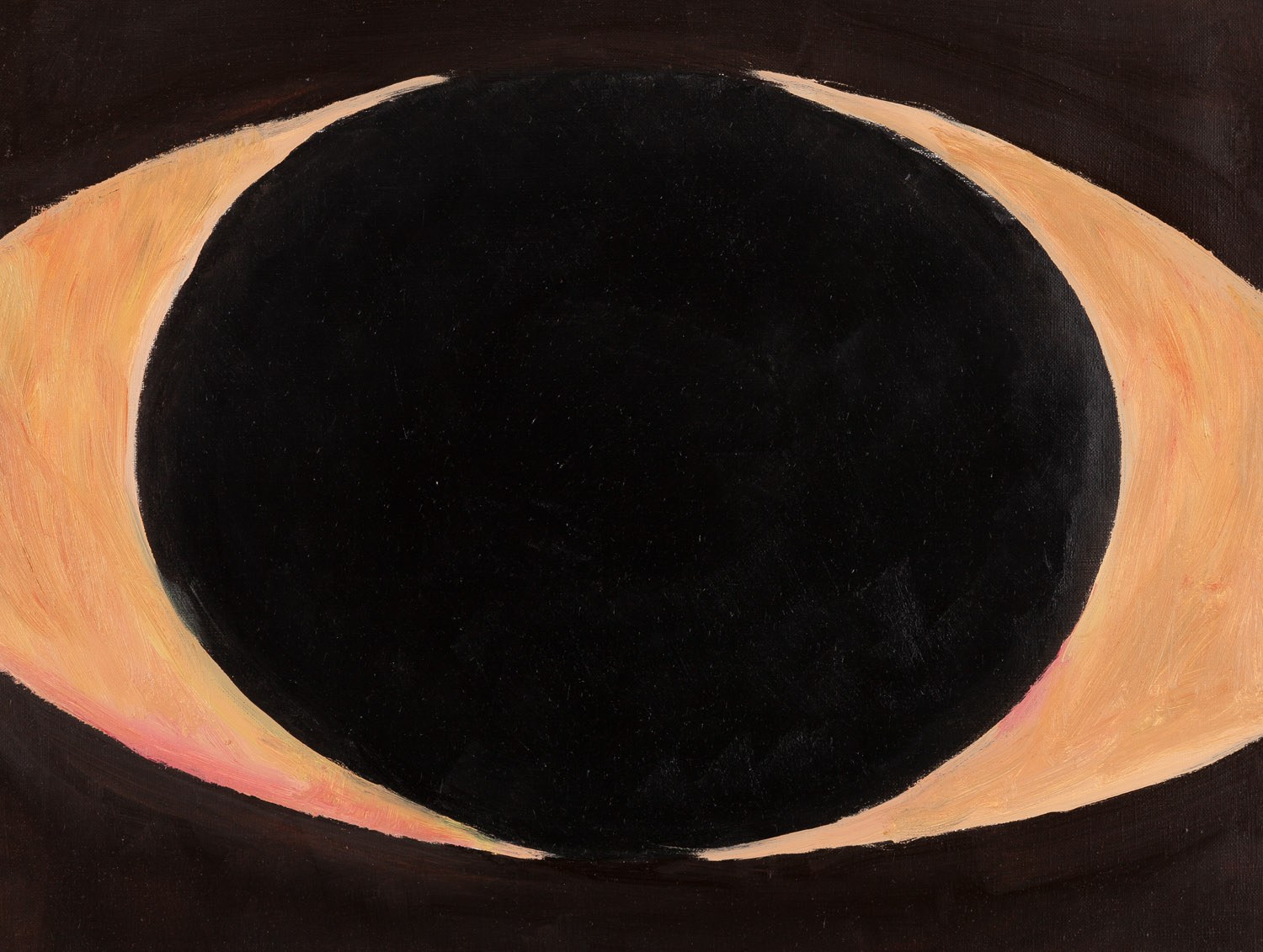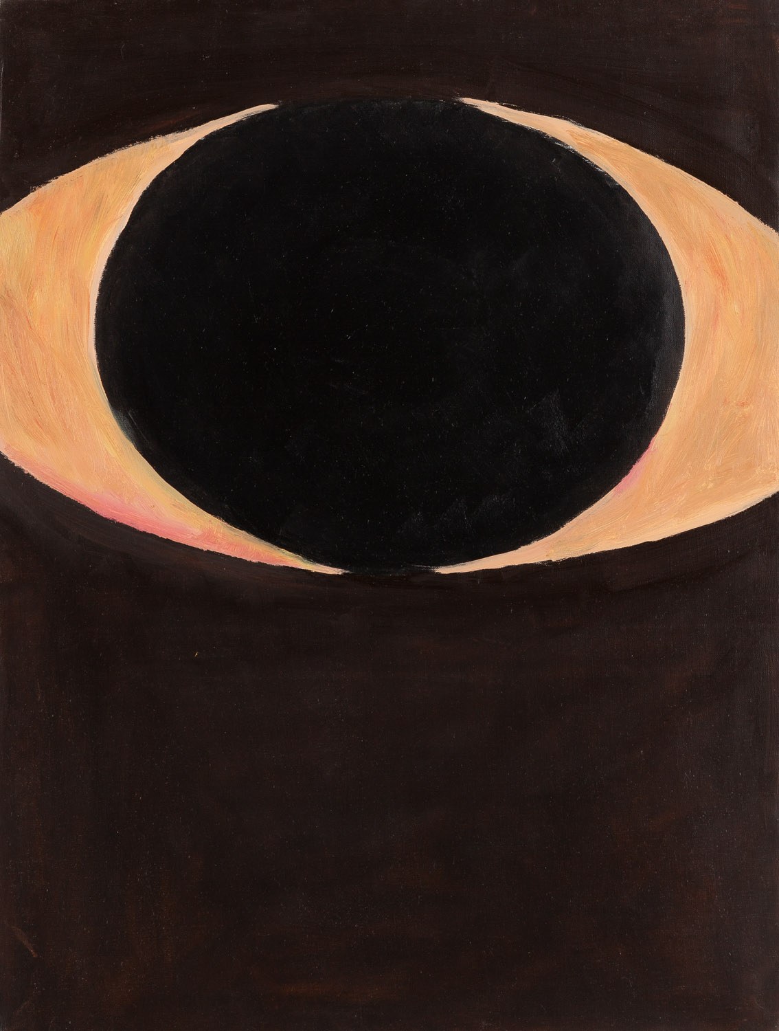 Obraz rozpoczęty w latach 80., a zatem w początkach kariery artystki został ukończony w tym roku. W pracy odnajdujemy podwójny tytuł - w pierwszym momencie widzimy dwa skierowane do siebie księżyce. Po uważniejszym przyjrzeniu się widoczne jest czarne oko i impastowo oddana źrenica.