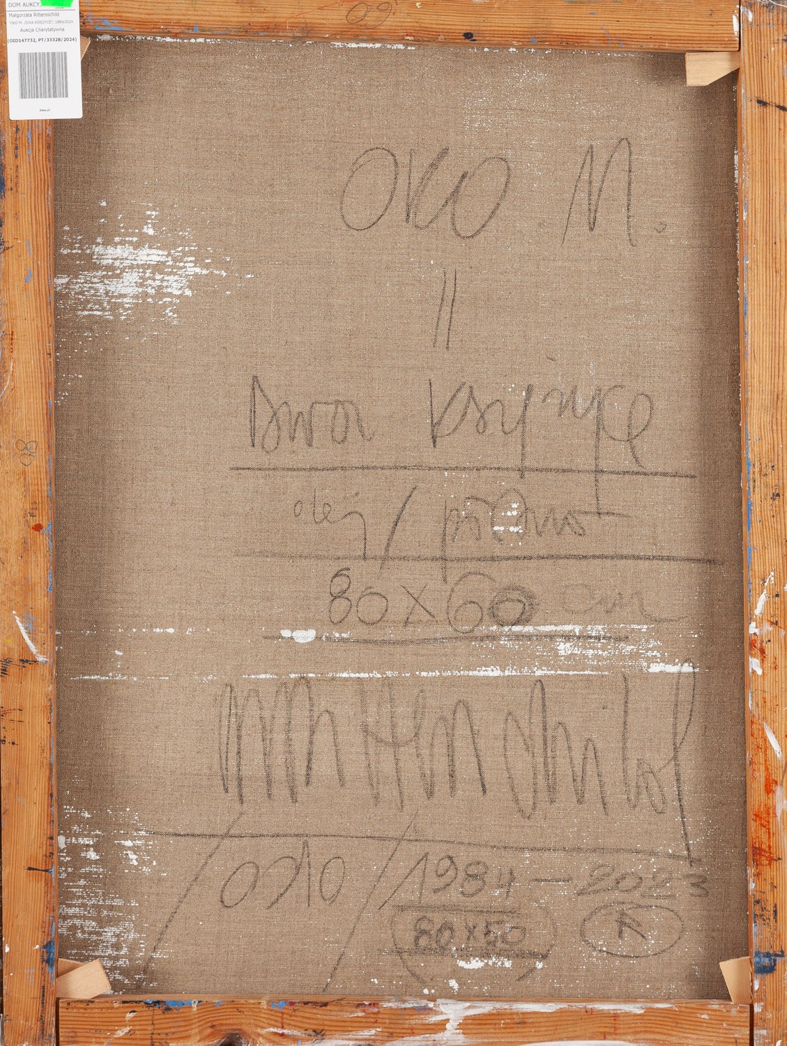 sygnowany, datowany i opisany na odwrociu: 'OKO.M. | // | Dwa Księżyce | olej / płótno | 80x60 cm | [sygnatura artystki]'