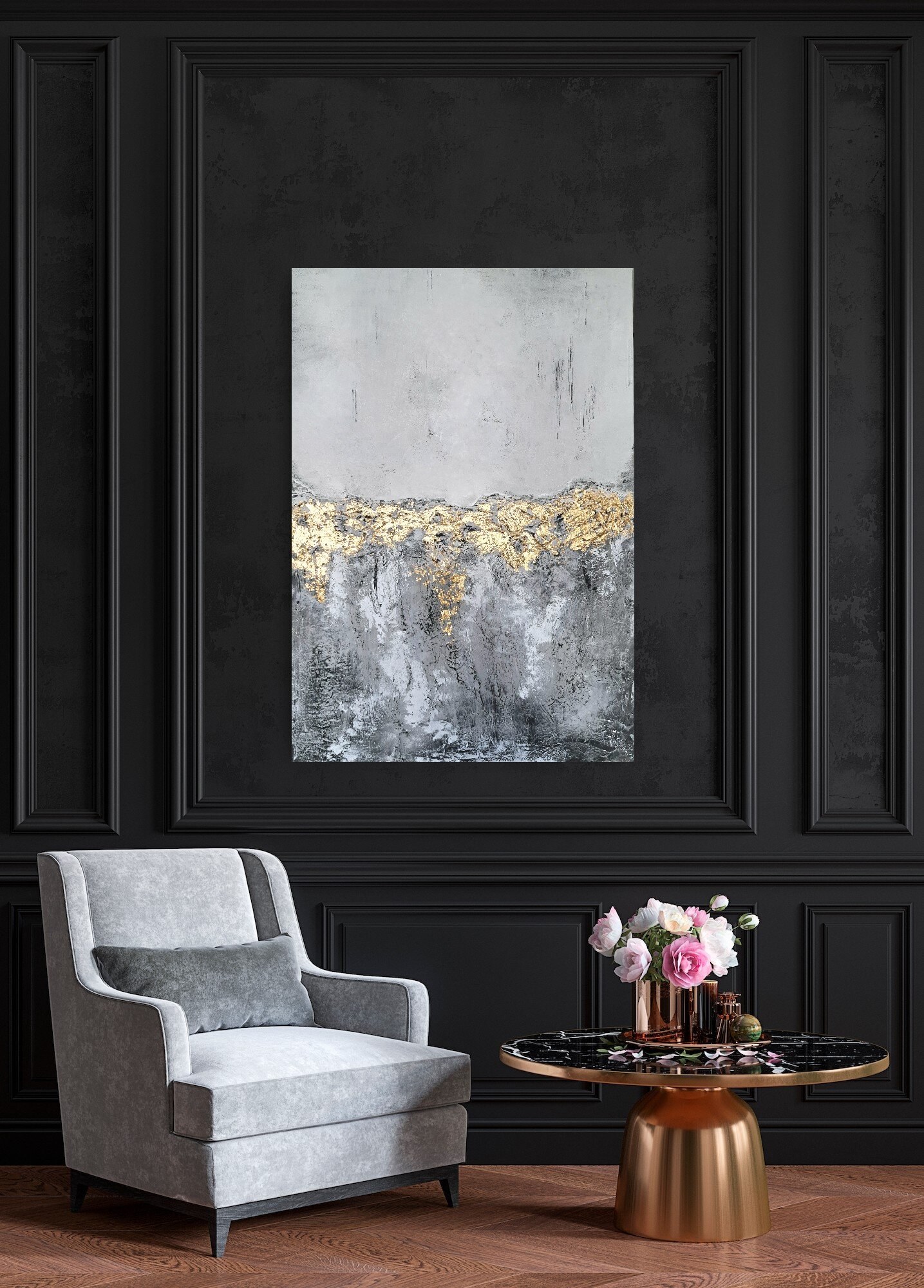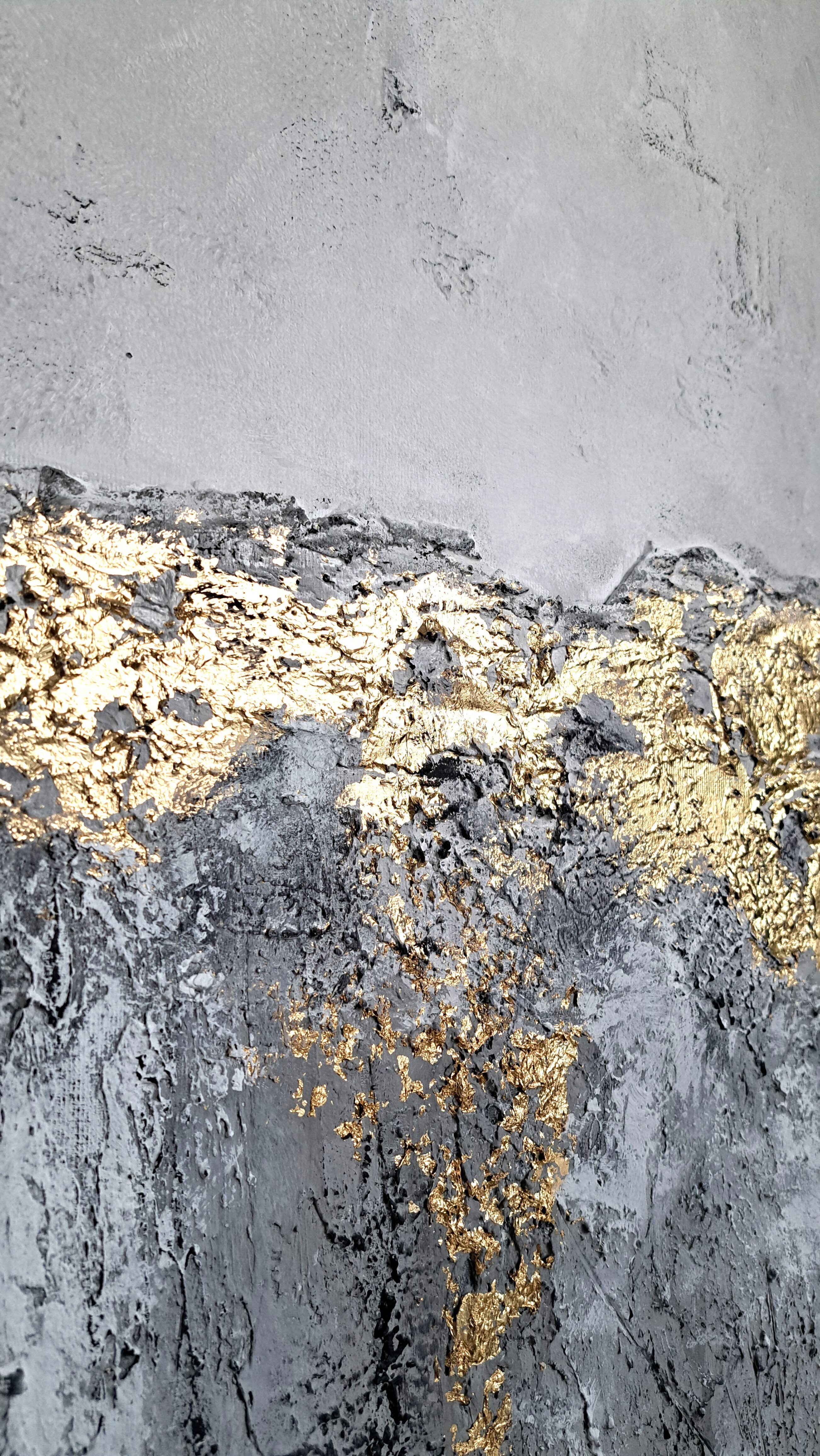 Akryl, płótno, szlagmetal, struktura szarości, 100 x 70 cm