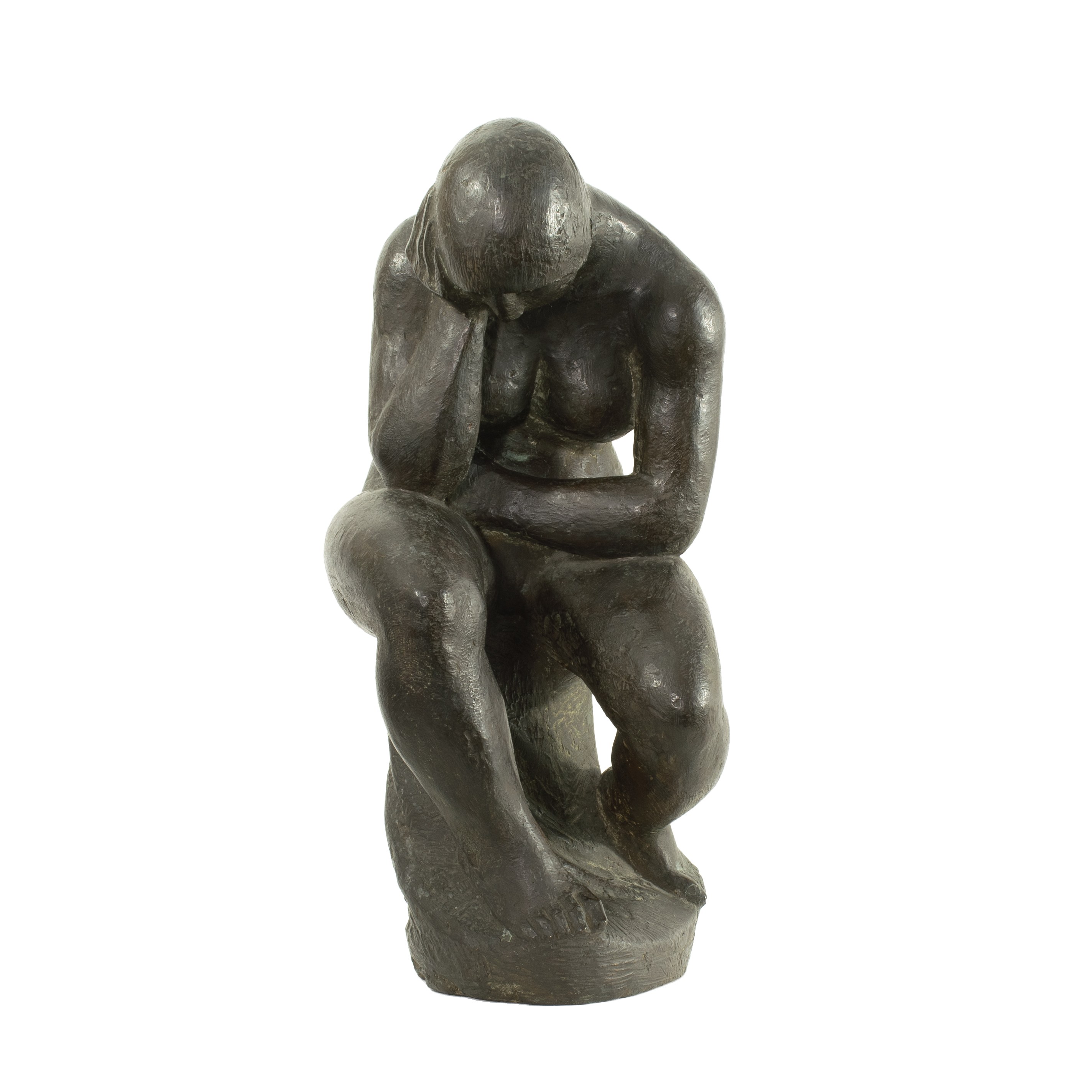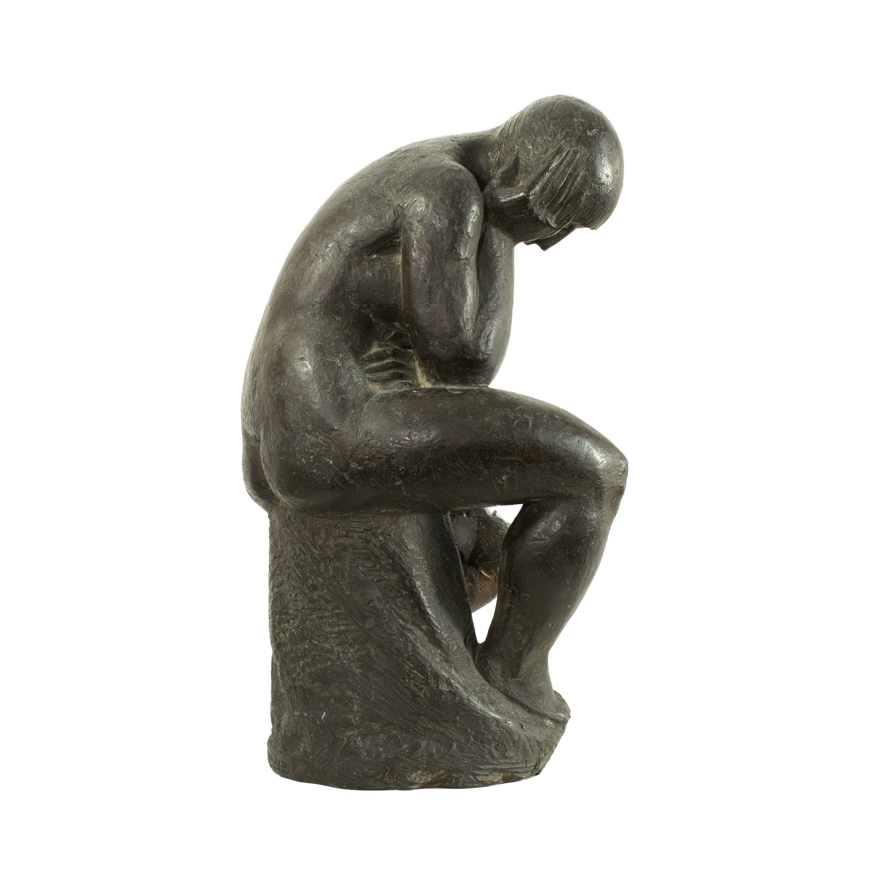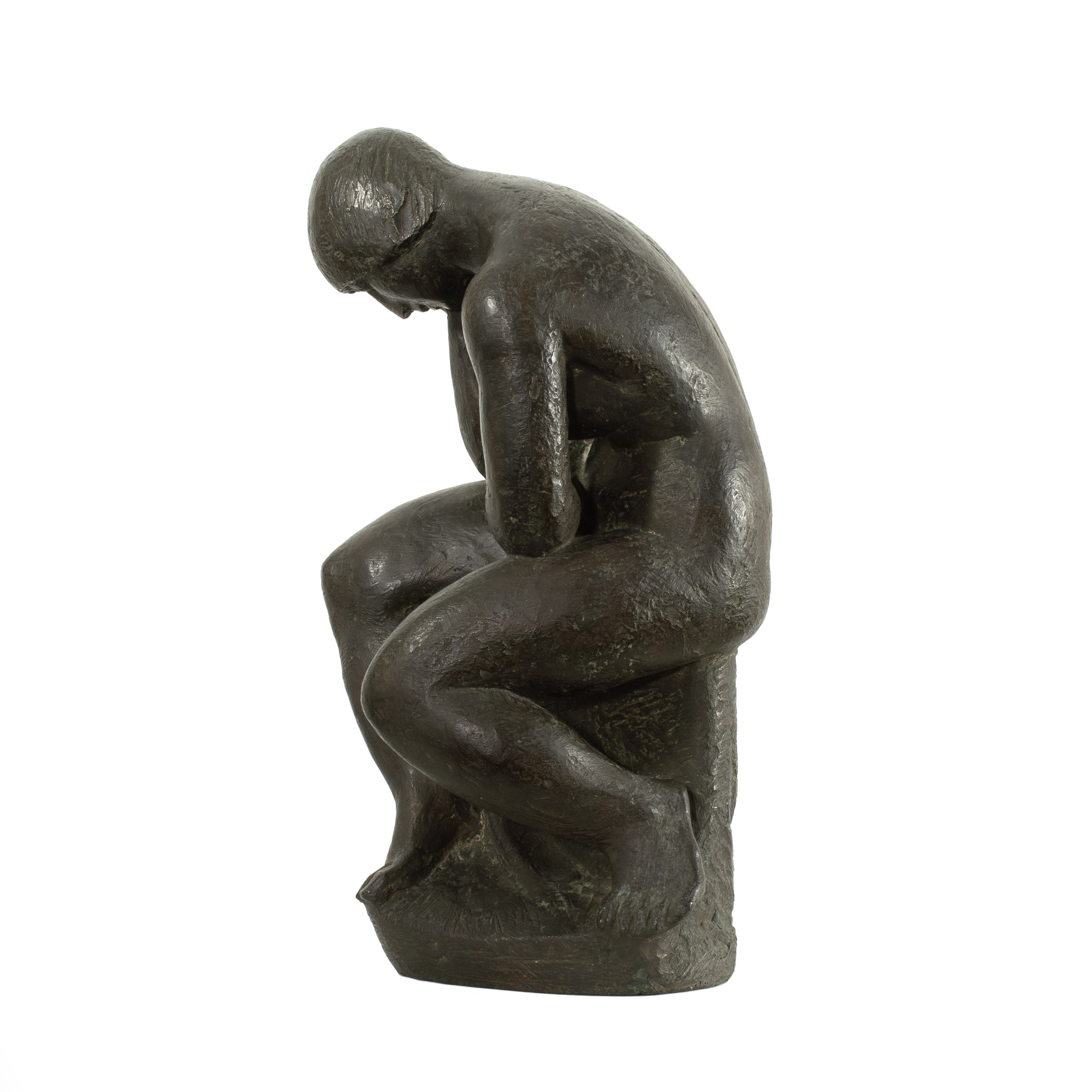 The Thinker, dark patinated bronze, height approx. 40 cm, monogrammed in the cast, dated '74', casting stamp Barth Rinteln