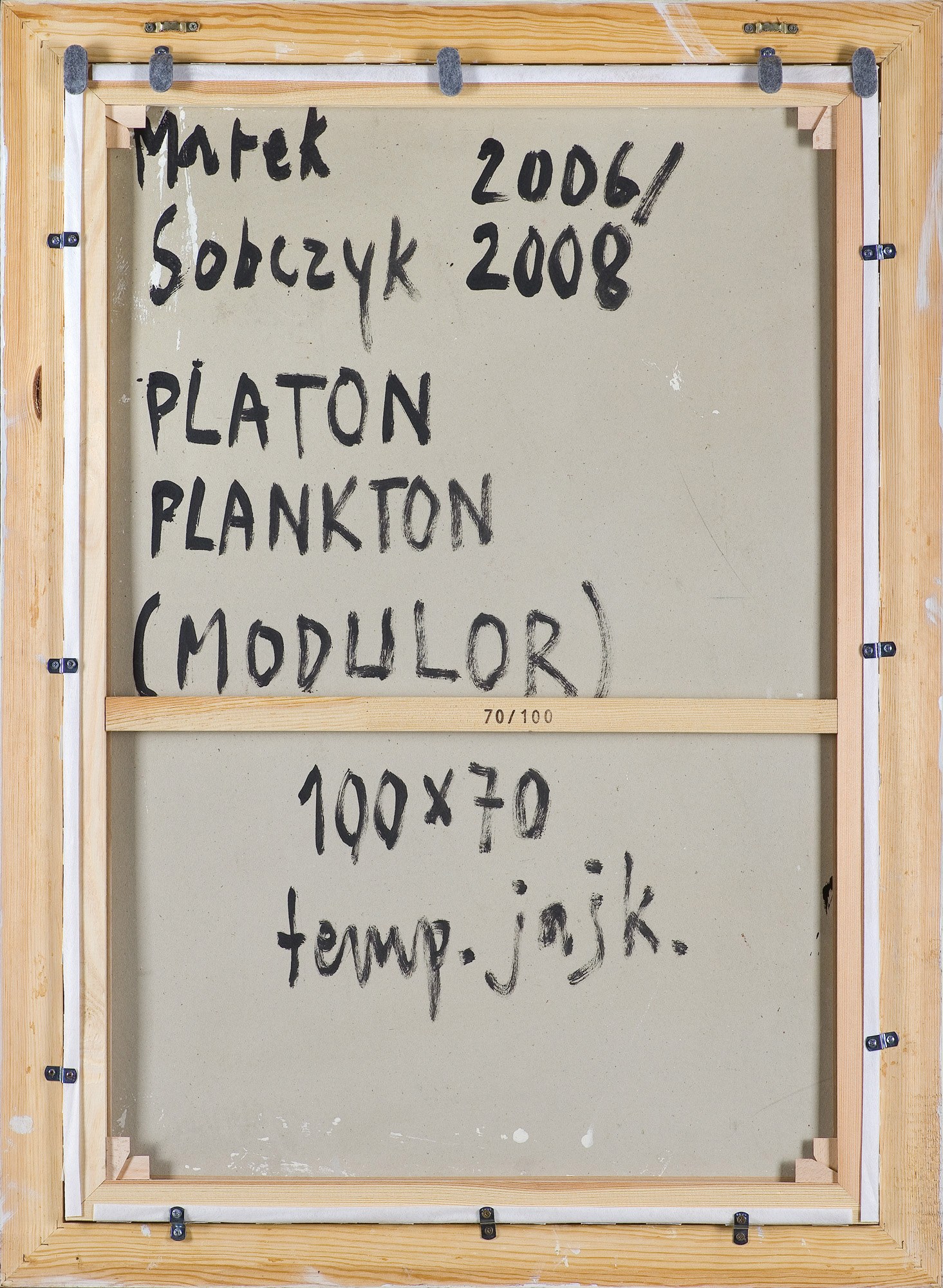 sygn. na odwr. l.g.: Marek | Sobczyk, p.g.: 2006/ | 2008, niżej: PLATON | PLANKTON | (MODULOR) | 100 x 70 | temp. jajk.