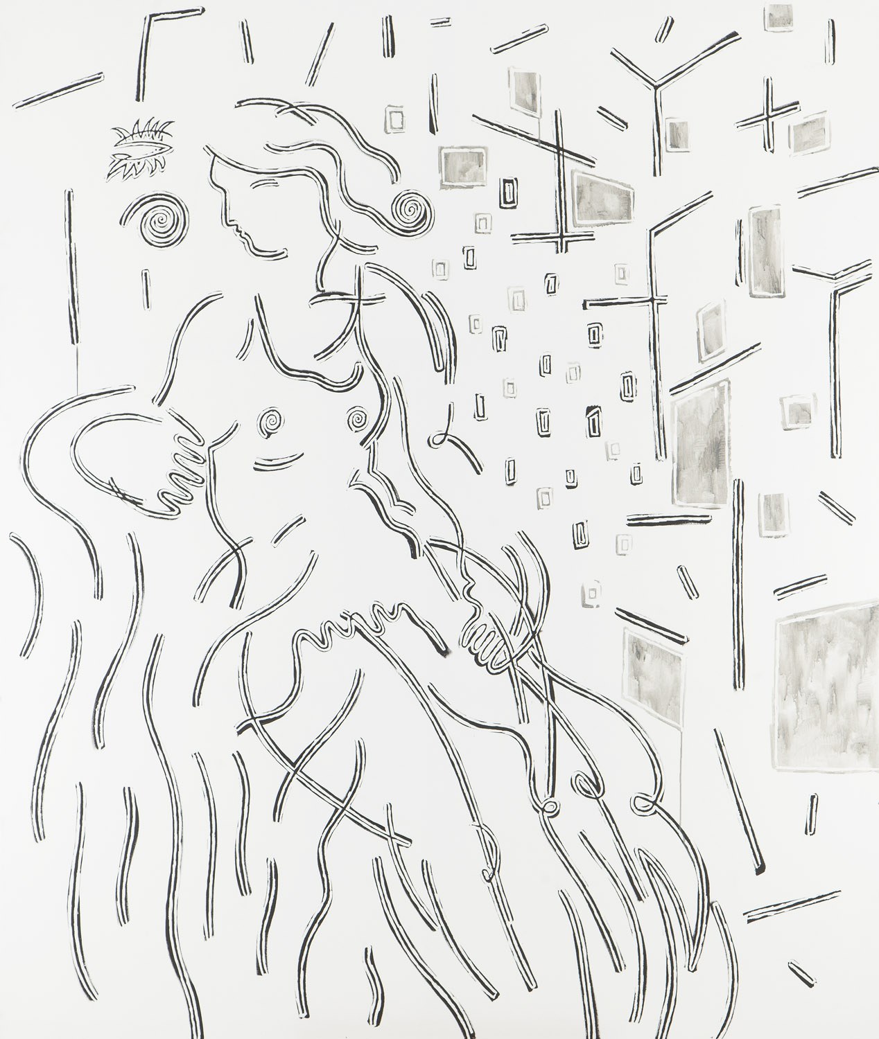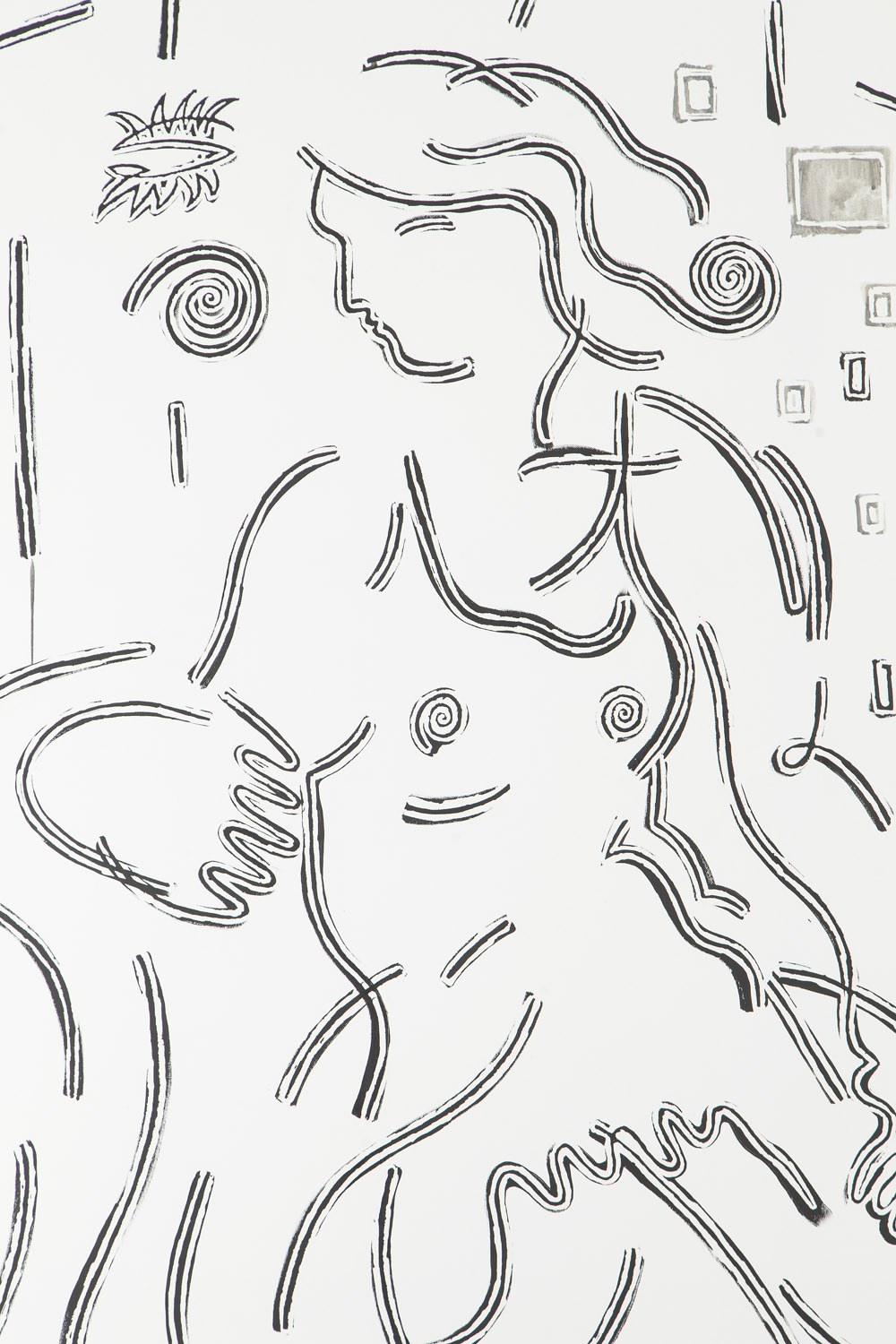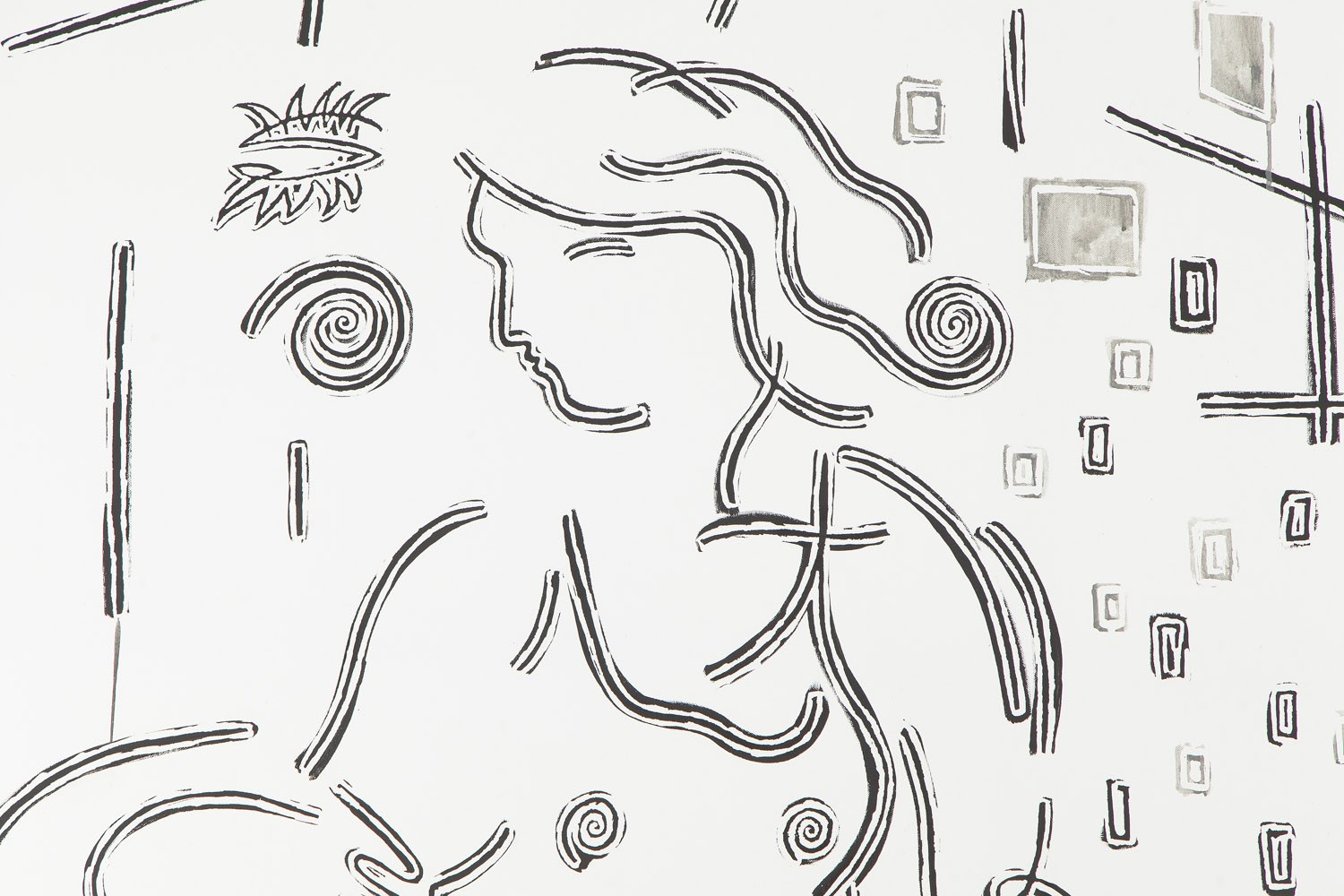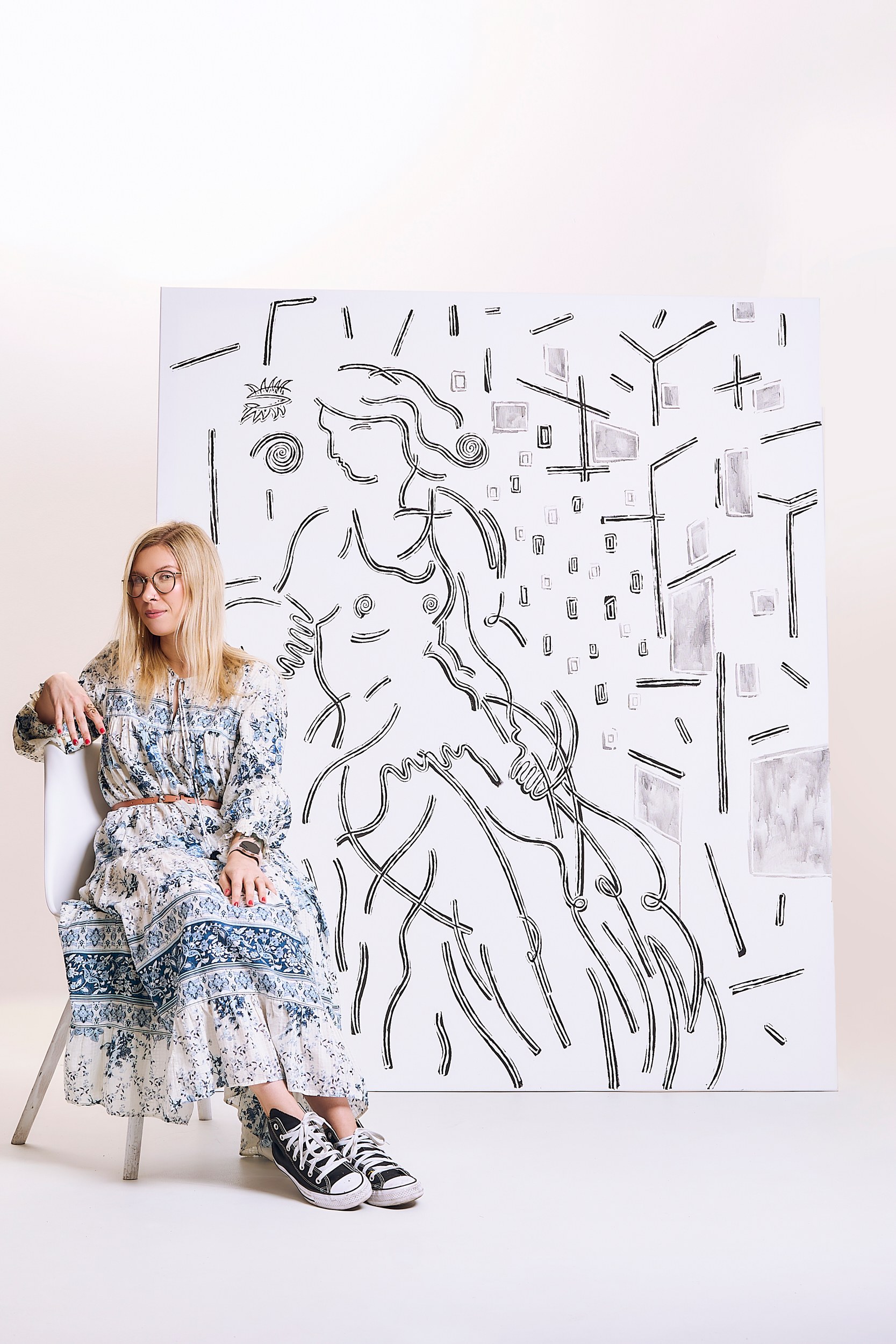Zrobiłam to w charakterystyczny dla siebie sposób, posługując się płynem maskującym, który daje charakterystyczny, graficzny efekt, oraz farbą akrylową. Całość opiera się na minimalistycznym szkicu, balansującym na pograniczu abstrakcji i figuracji”.
