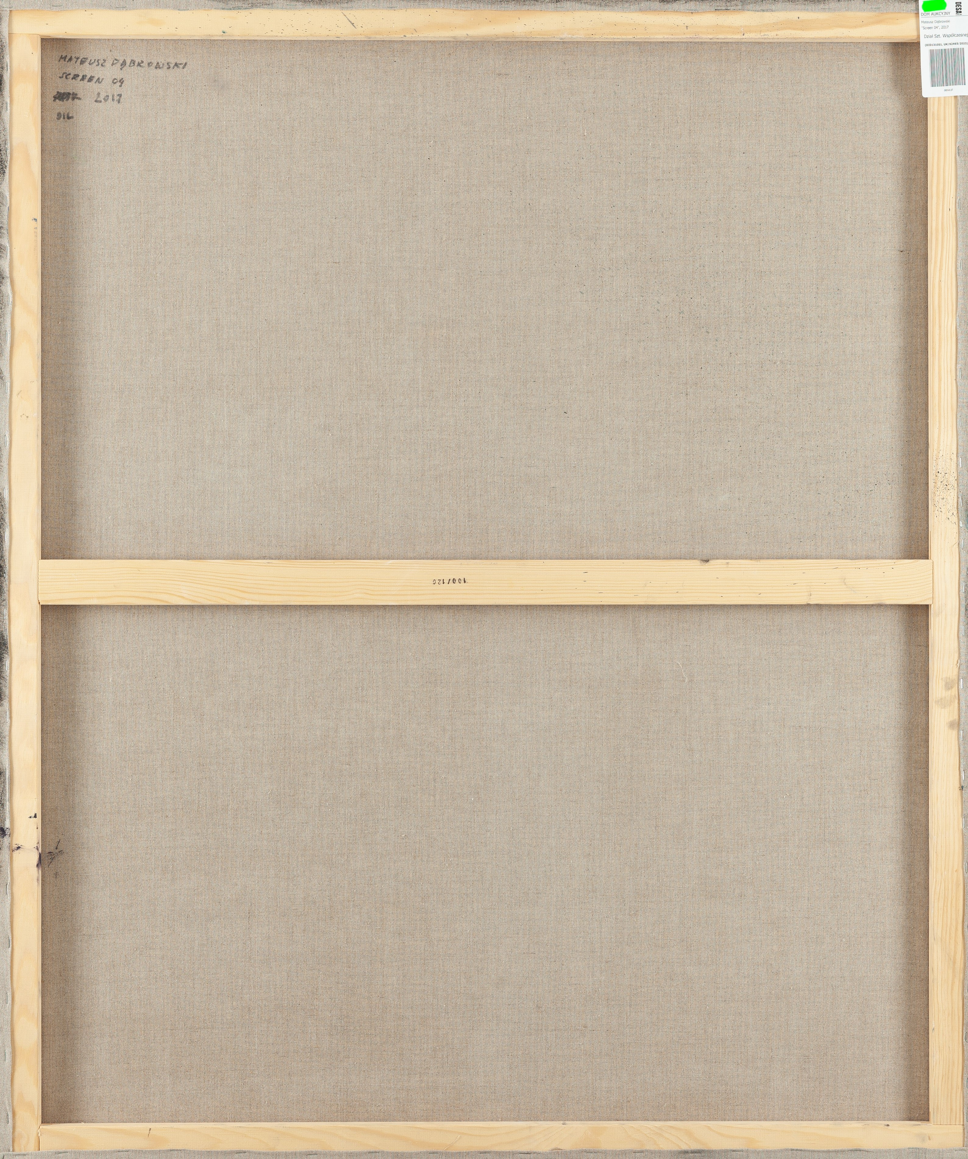 sygnowany, datowany i opisany na odwrociu: 'MATEUSZ DĄBROWSKI | SCREEN 04 | 2017 | OIL'