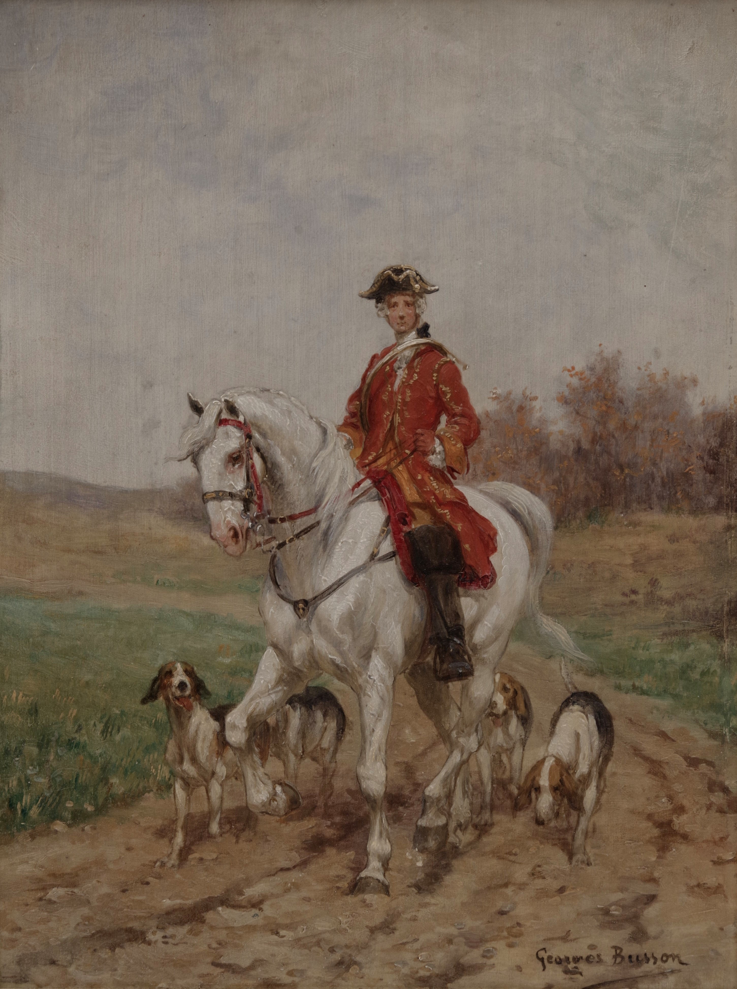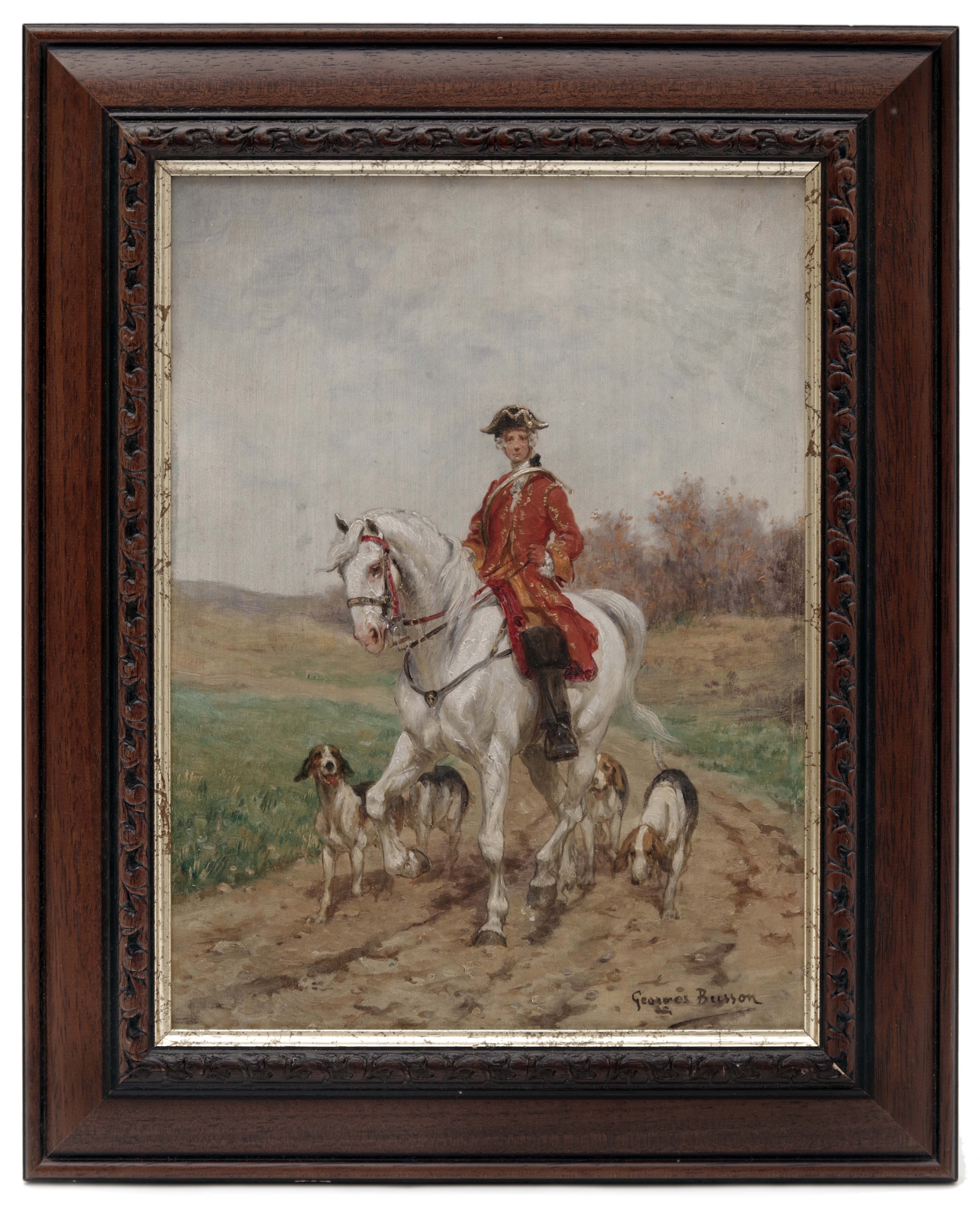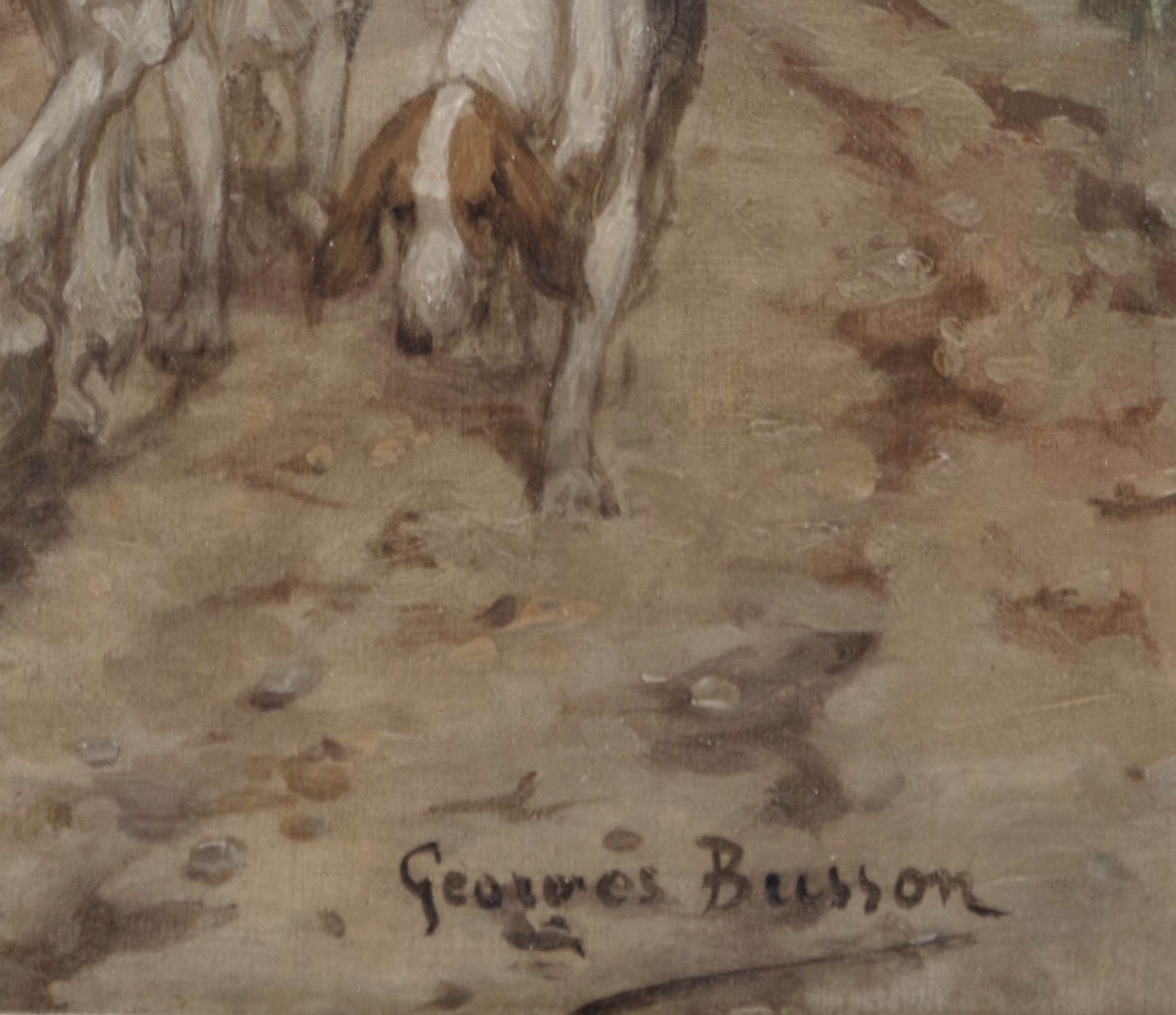 Olej na kartonu, signováno vpravo dole "Georges Busson". Georges Louis Charles Busson (1859 Paris - 1933 Versailles).  Francie kolem 1900, rozměry 26,5 x 35 cm. Rámováno. Stav 2ováno, Oil on card, signed 'Georges Busson' lower right. Georges Louis Charles Busson (1859 Paris - 1933 Versailles), France, c. 1900, 26.5 x 35 cm. Framed. Condition 2