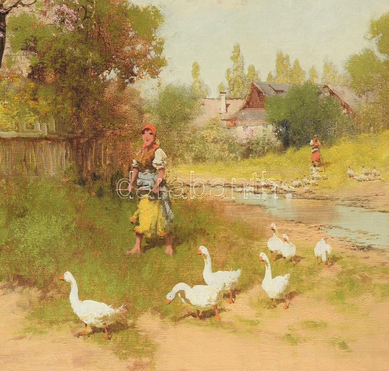 Neogrády László (1896-1962): Libapásztorlány. Olaj, vászon, jelezve balra lent. Dekoratív fakeretben. 60×80 cm ...