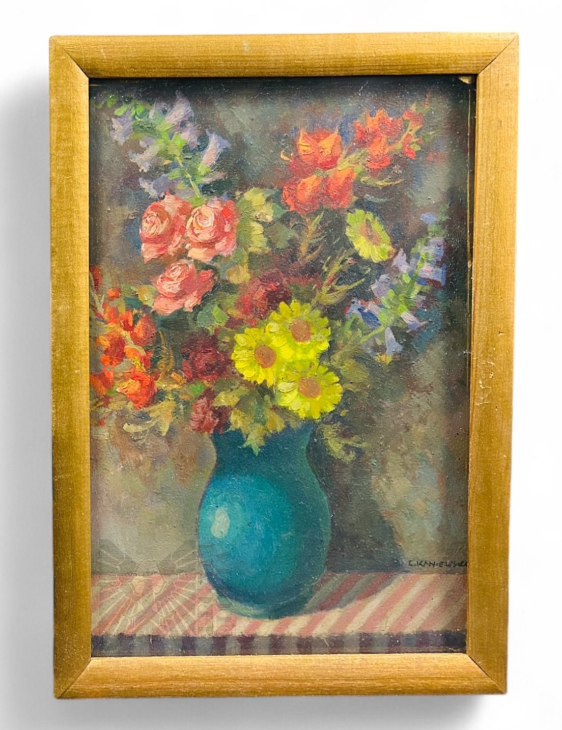 Nieznany Artysta (L. Kiniewski), XX w. - Obraz Kwiaty w Wazonie, Olej na Desce (?)