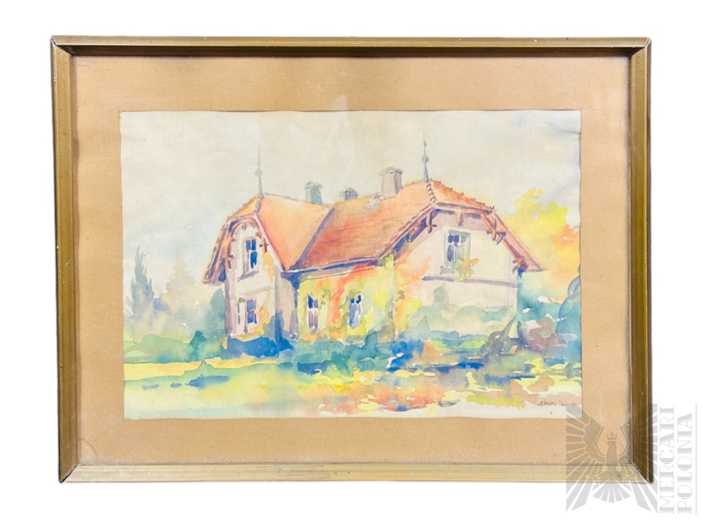 Nieznany Artysta (Waniak?, XX w.) - Obraz Secesyjny Dom w Krotoszynie, Akwarela na Papierze