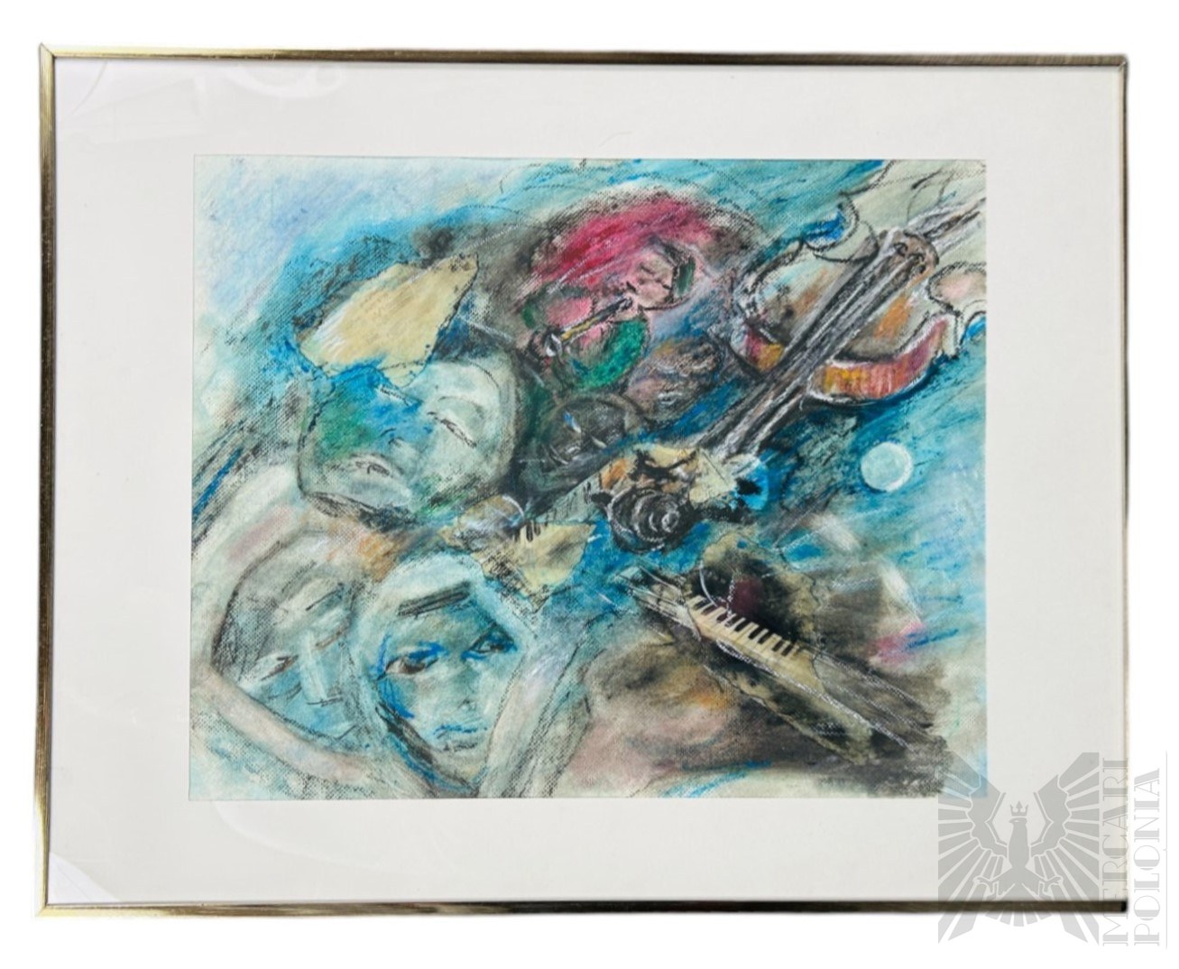 Nieznany Artysta (XX w.) - Obraz Kubizująca Orkiestra, Pastele Olejne na Desce