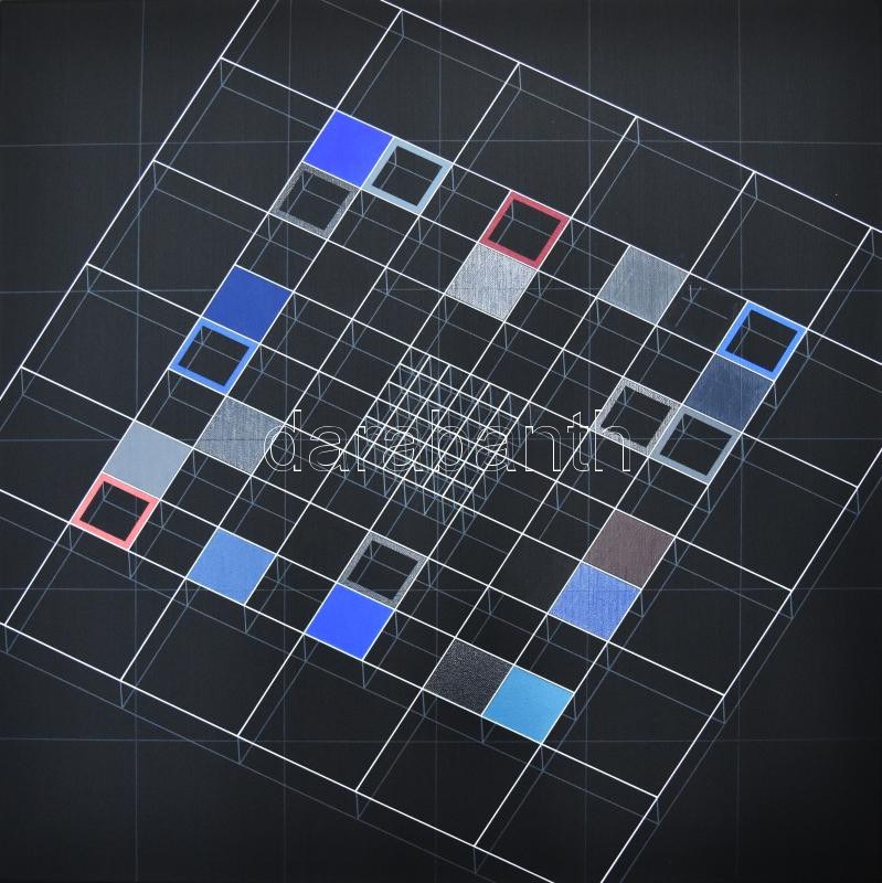 Ottó László (1966-): Origo-metrum + space [20200529]. Akril, vászon, jelzett a hátoldalán. 60x60 cm. A művész jelenleg Sulzburg-ban él és dolgozik, a 'gruppe konkret' (Bonn) tagja. / Laszlo Otto (1966-): Origo-metrum + space [20200529]. Acrylic on canvas, signed on the reverse. 60x60 cm.