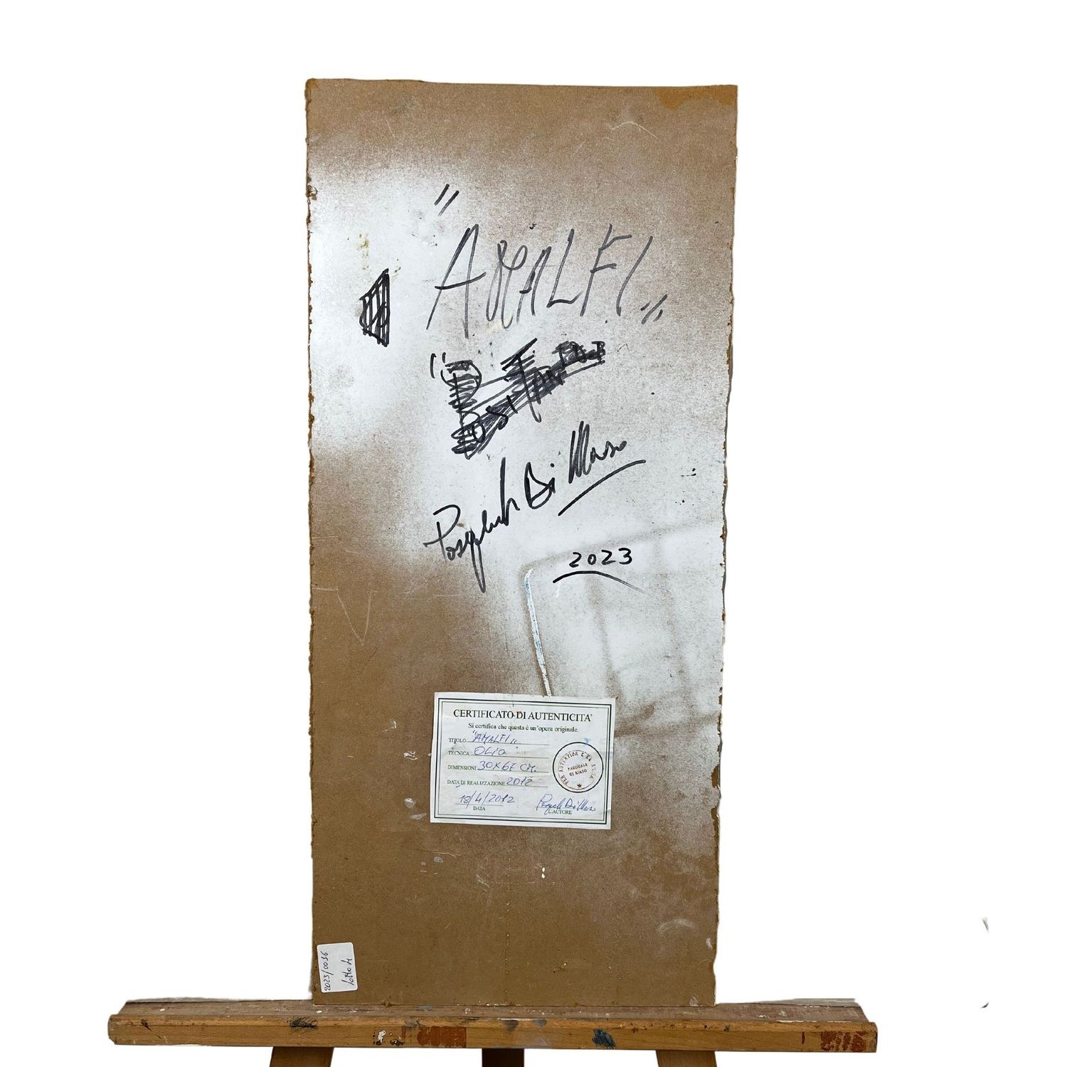 Oil painting on panel, depicting Amalfi. Period: 2012. Dimensions: 30x67. Certificate of authenticity on the back.
