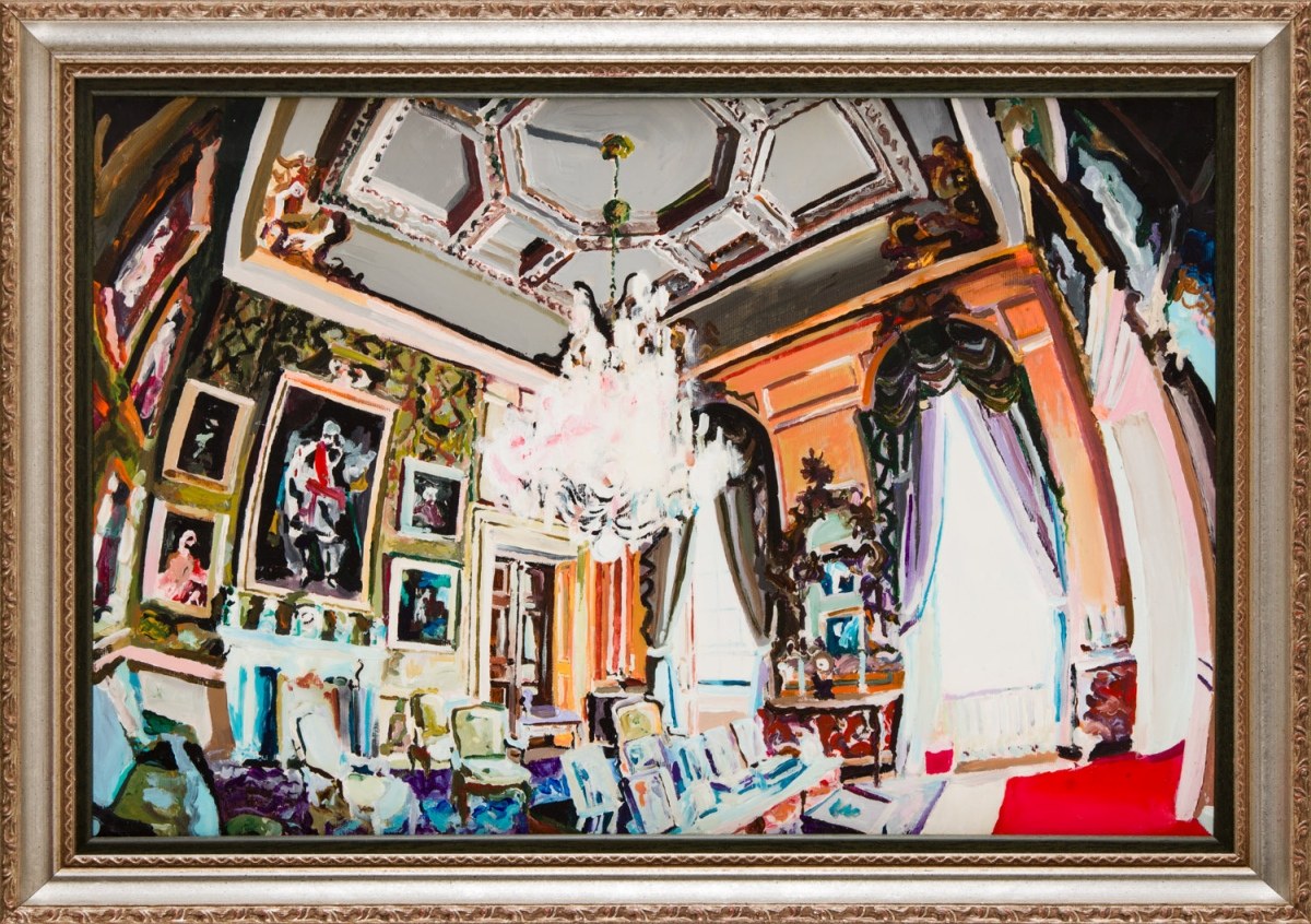 technika własna (olej, szkliwo), płótno, 40 x 60,5 cm, sygn. na odwrocie: Paweł Kałużyński / z cyklu "Vertigo" / 2017