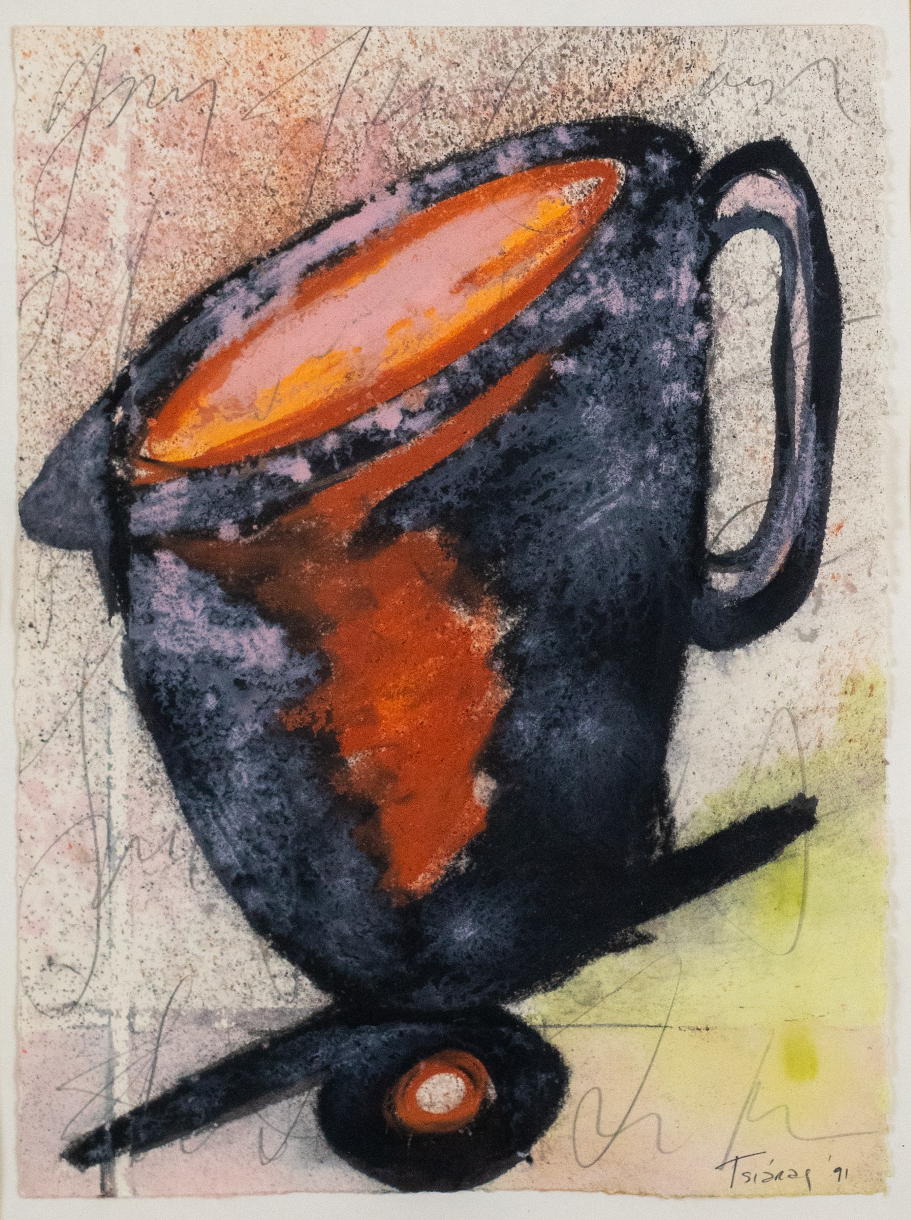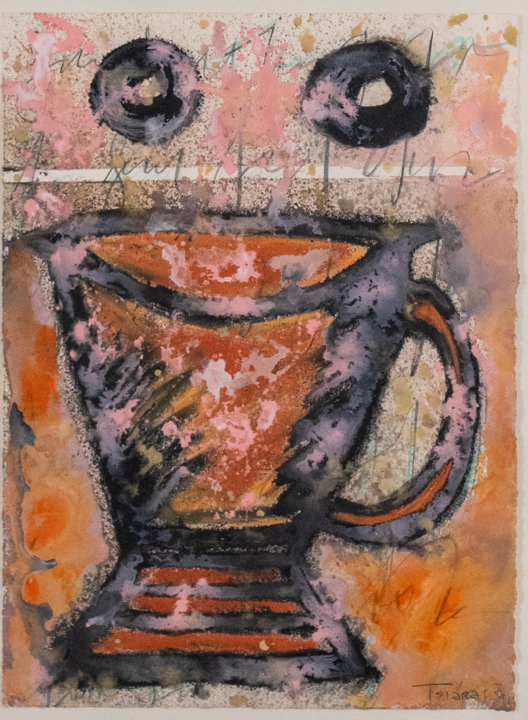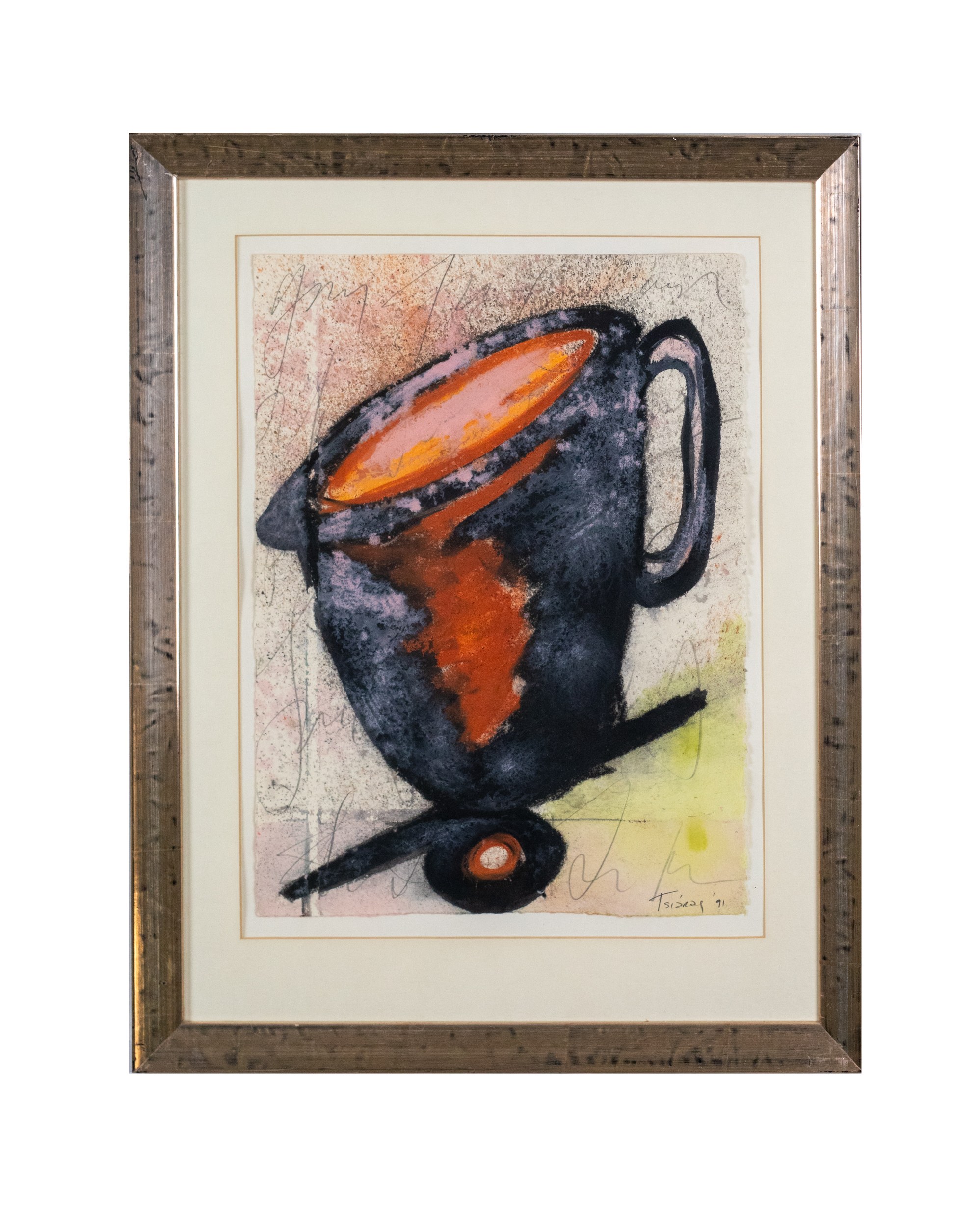 4-piece collection of works on paper, cup and jug motifs, mixed media on paper, 38 cm x 28 cm sheet size, each signed and dated 91