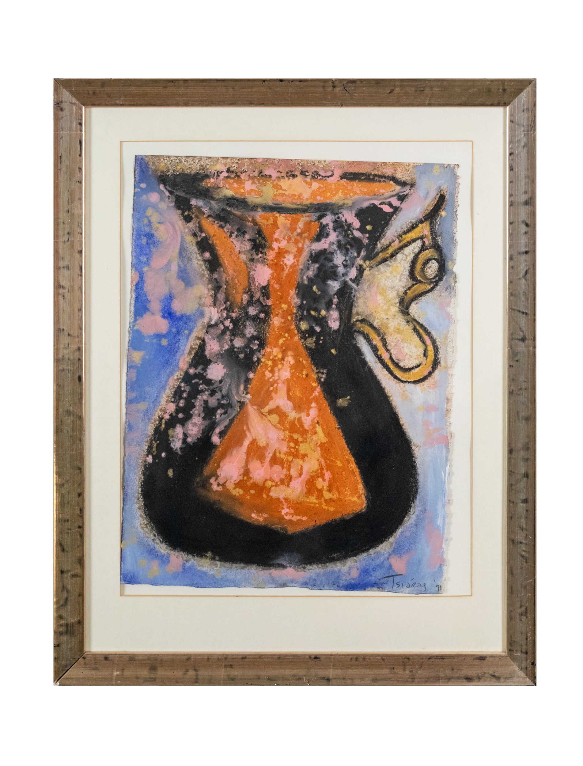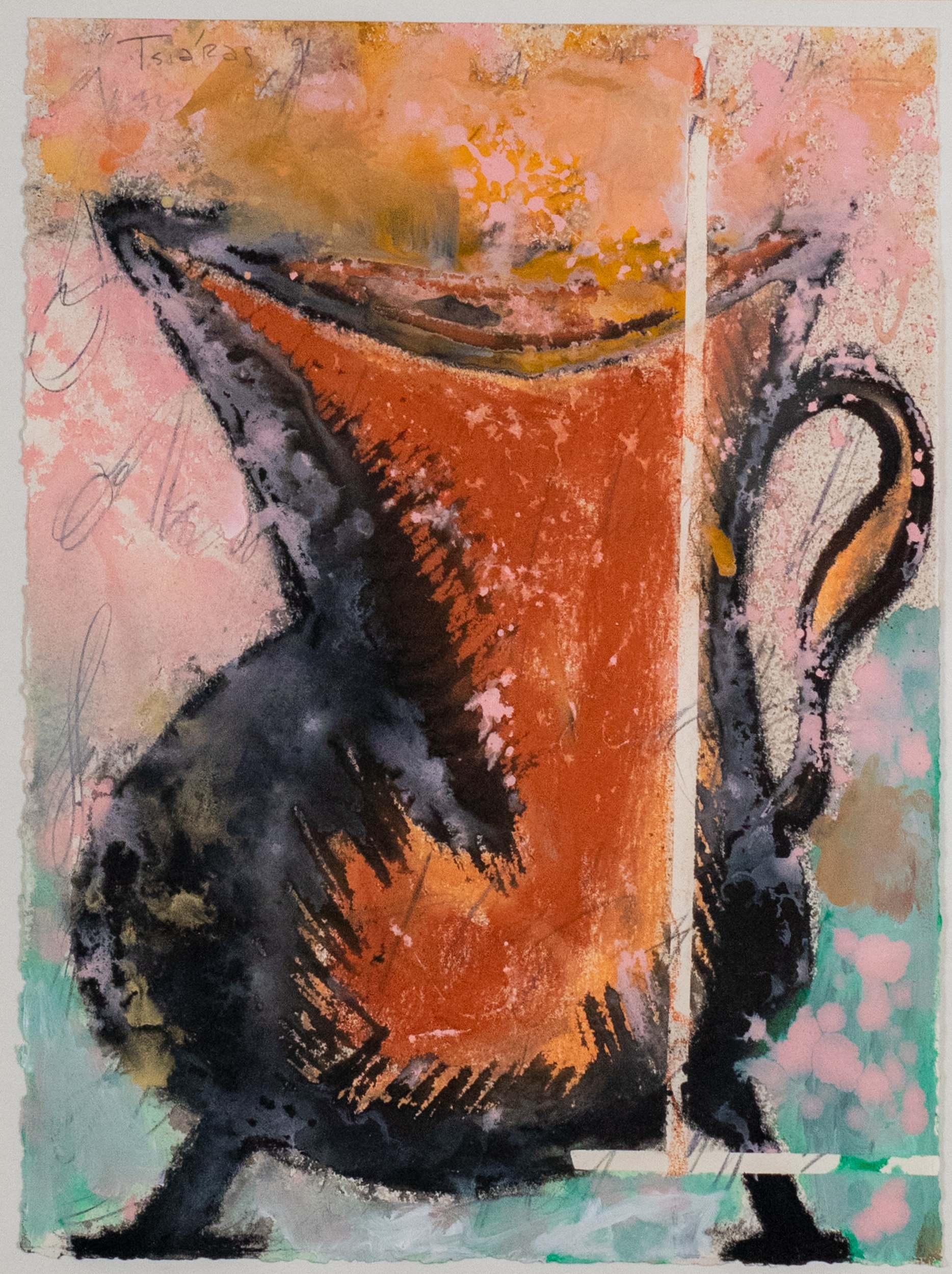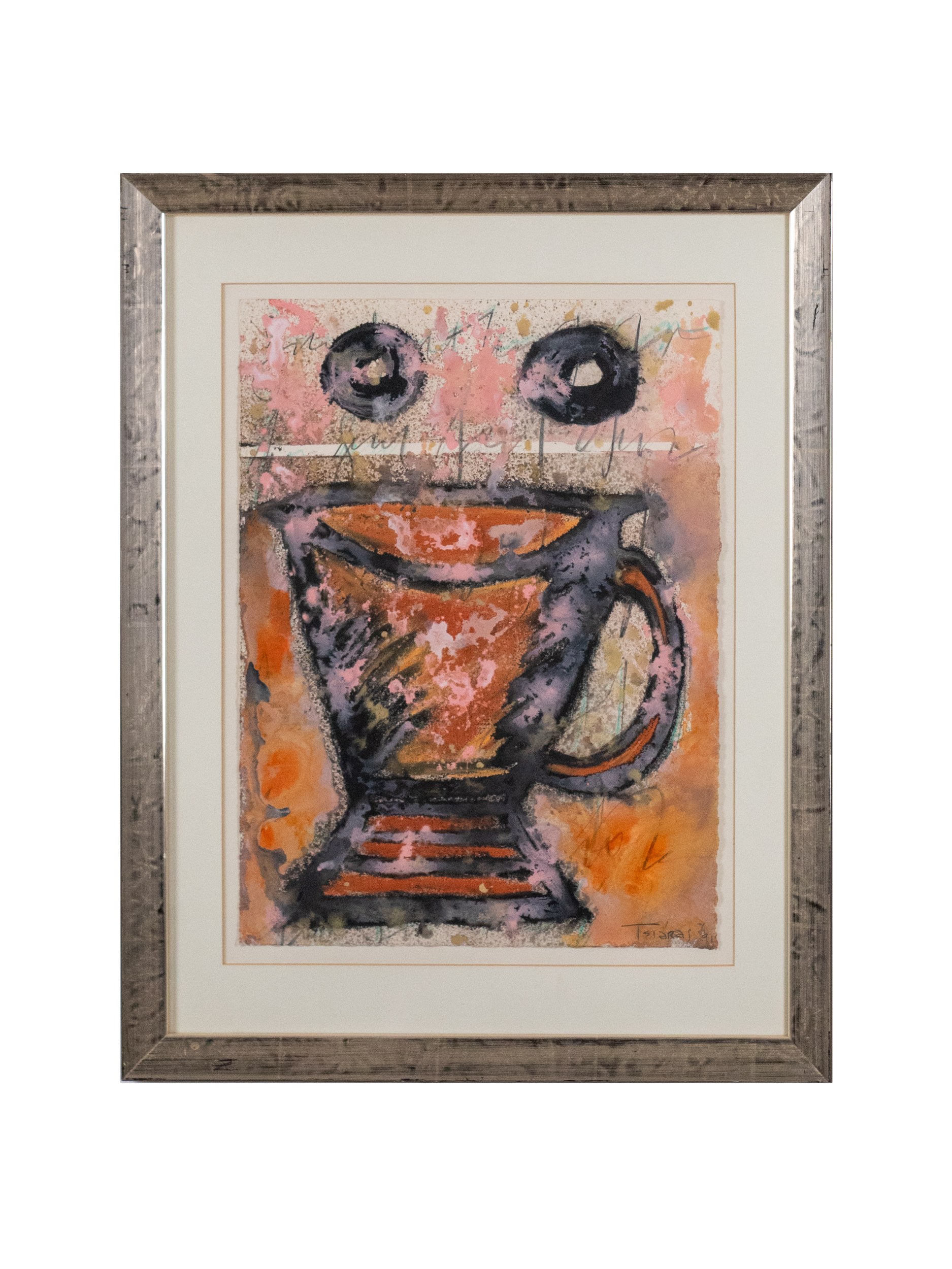 4-piece collection of works on paper, cup and jug motifs, mixed media on paper, 38 cm x 28 cm sheet size, each signed and dated 91