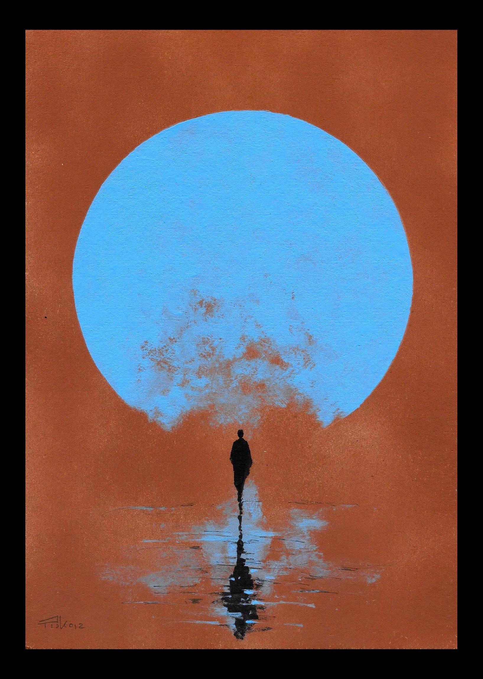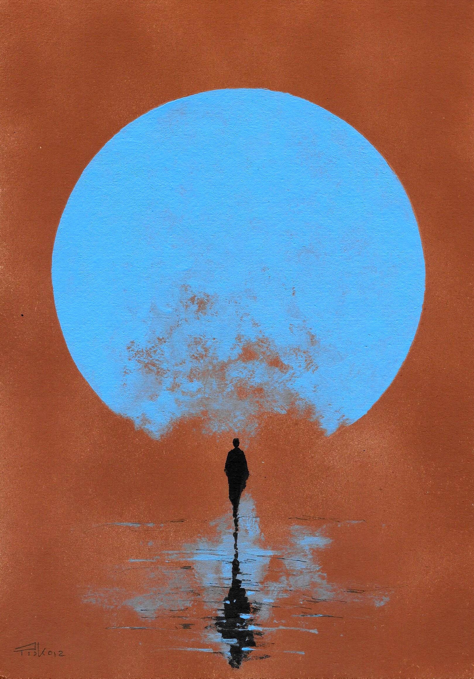 obraz malowany farbami akrylowymi i tuszem na tekturze introligatorskiej, rozmiar 21 x 29 cm, sygnowany