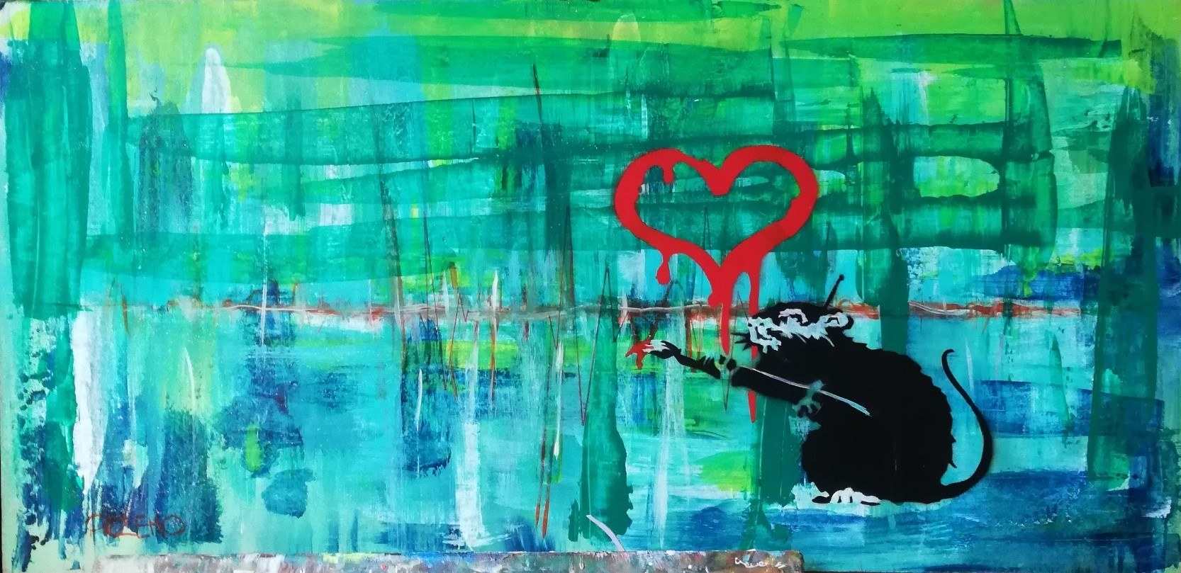 Obraz akrylowy, farba w sprayu na płycie MDF, 41,5 x 85 cm