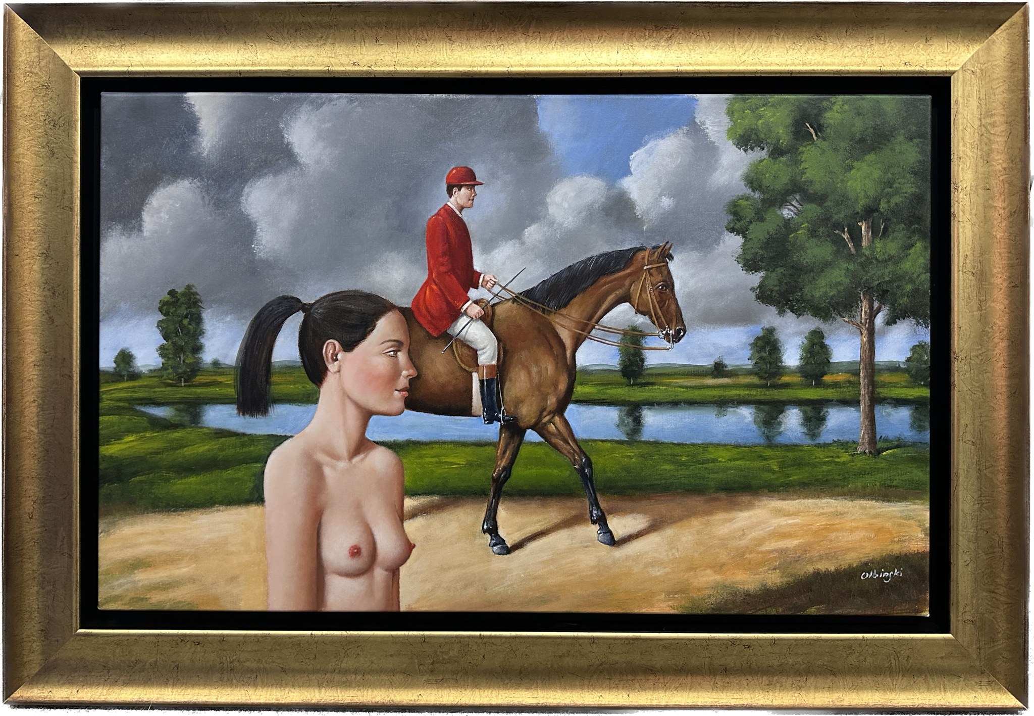 olej/płótno, 54 x 84 cm, praca oprawiona 66 x 96 cm, sygnowana p. d.