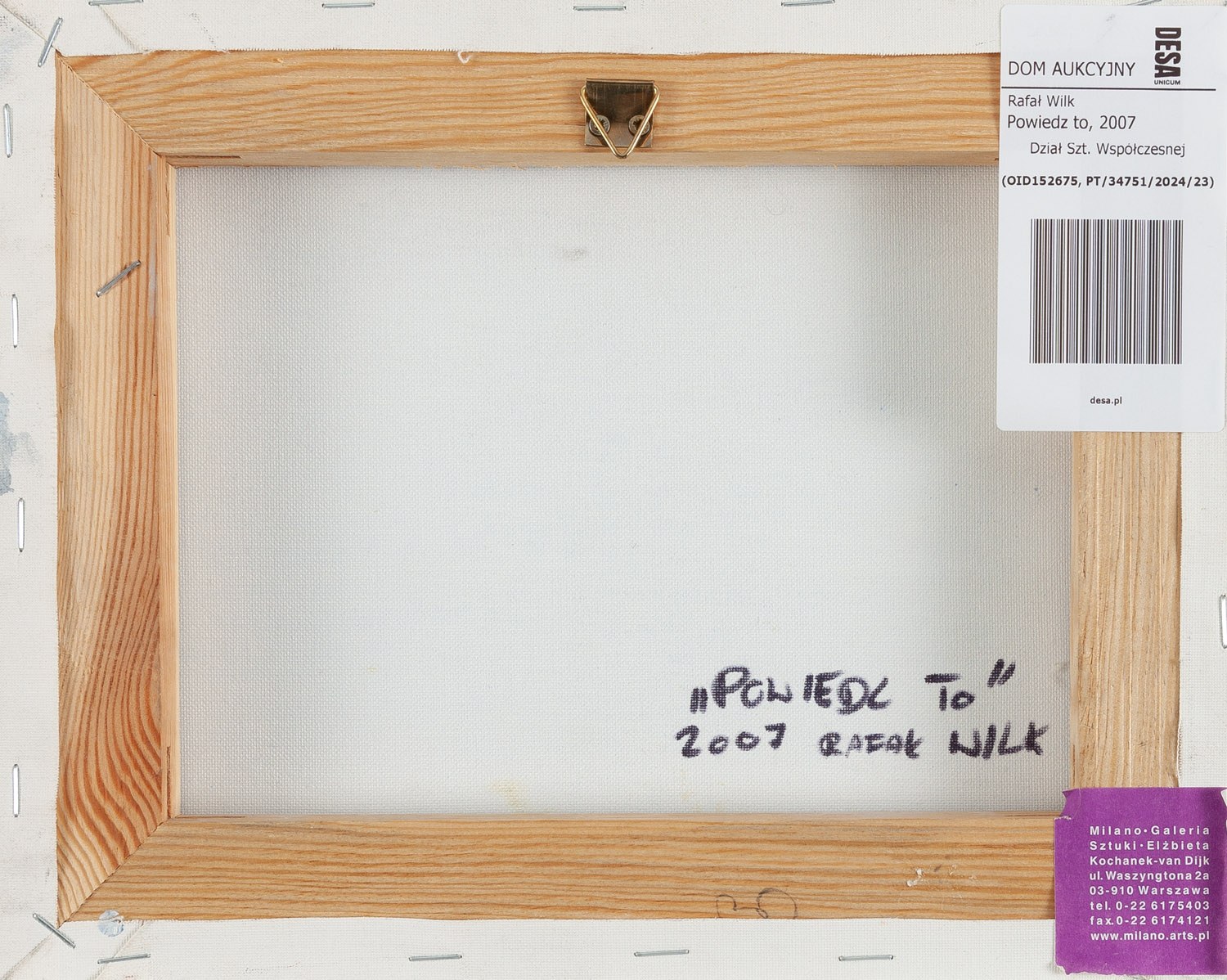 na odwrociu nalepka Milano Galeria Sztuki