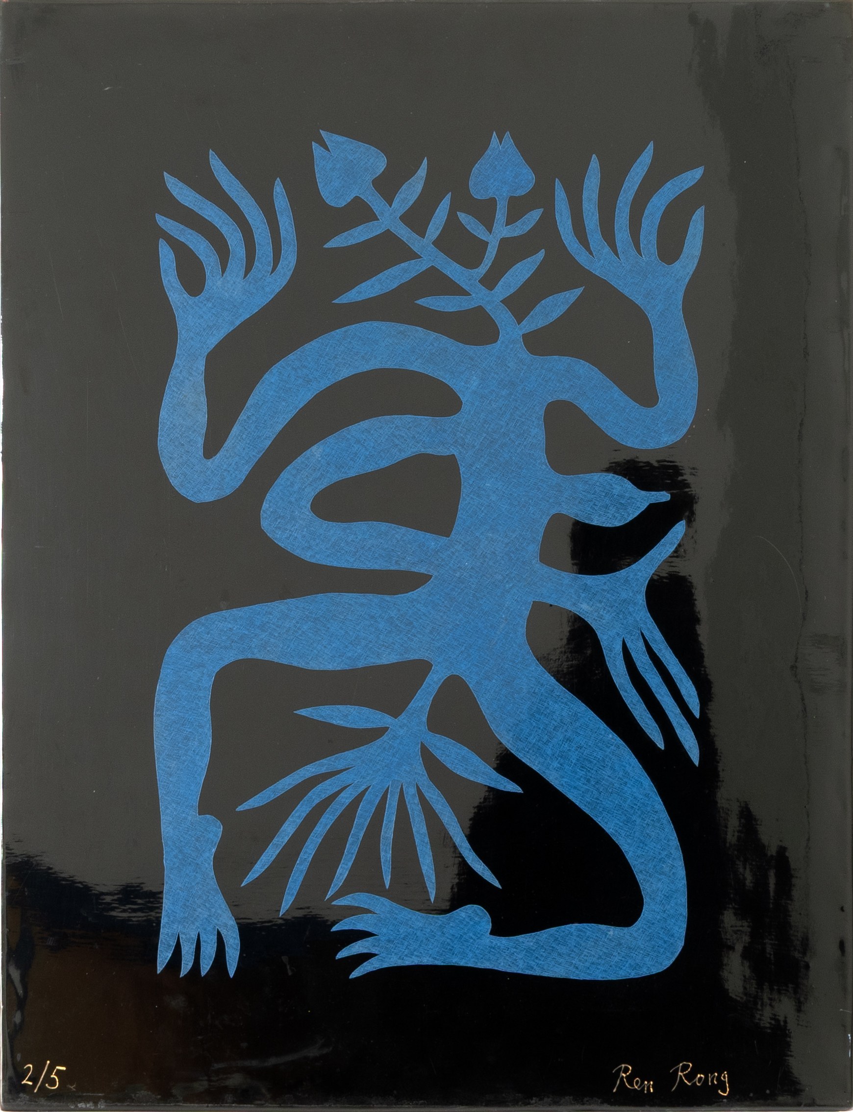 Plant Man, lacquer and silkscreen on wood, 65 cm x 50 cm x 6 cm work dimensions, numbered and signed 2/5, slightly dirty, edges slightly bumped