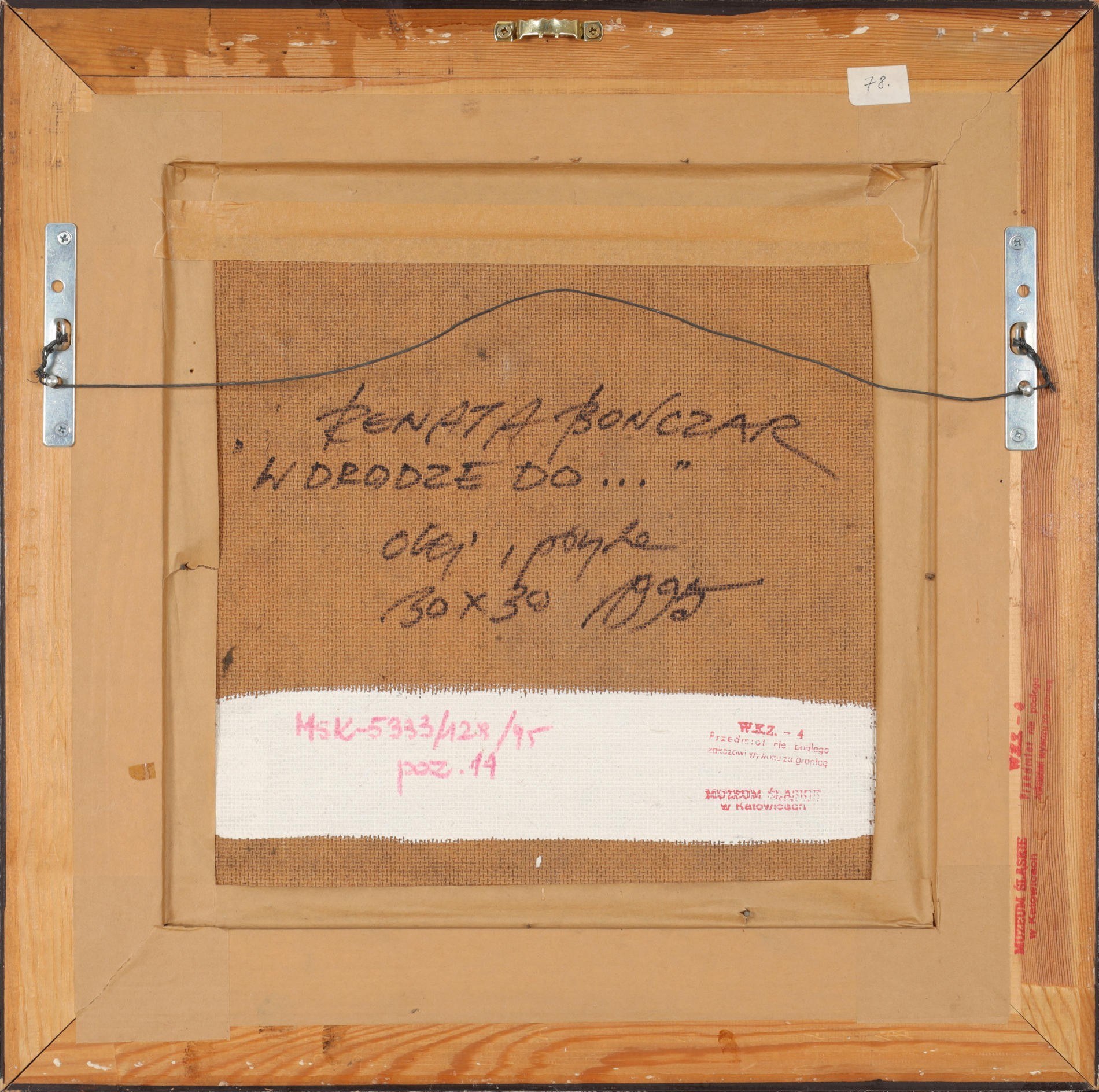 Opisany na odwrocie: "RENATA BONCZAR | W DRODZE DO… | olej, płyta | 30 x 30 1995"